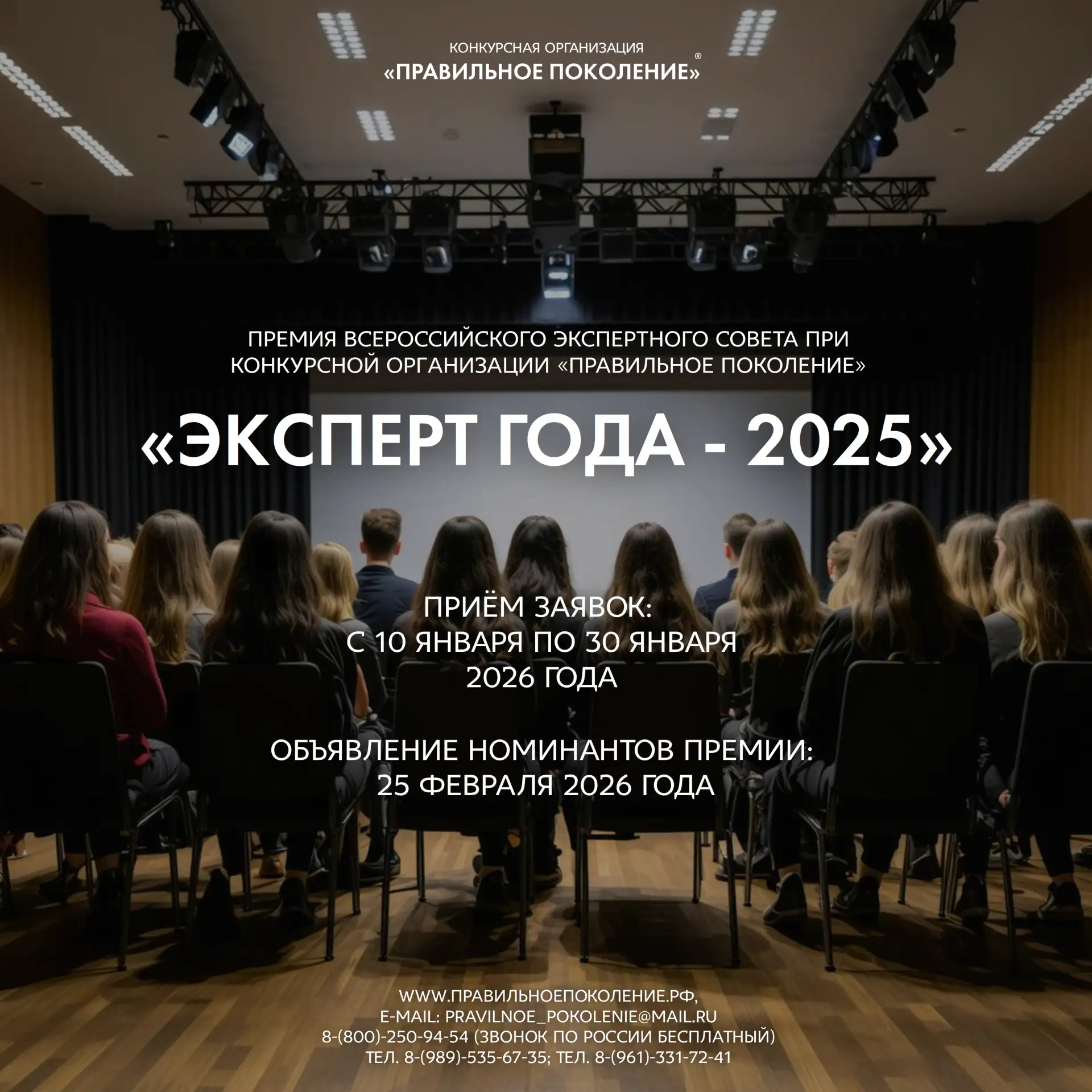 Специальная премия всероссийского экспертного совета при Конкурсной организации "Правильное поколение" начинает приём заявок для номинантов.