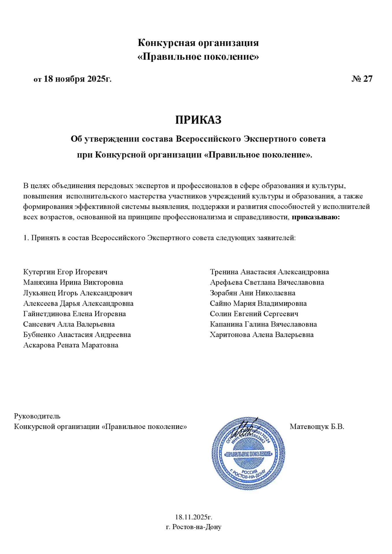📑Представляем вашему вниманию список экспертов, прошедших в состав Всероссийского экспертного совета.