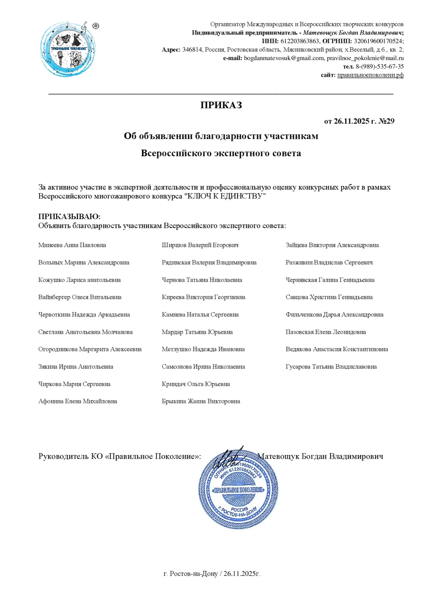 🏆Выражаем искреннюю признательность членам экспертного совета за их вклад в оценку конкурсных работ I Всероссийского многожанрового конкурса "Ключ к единству".