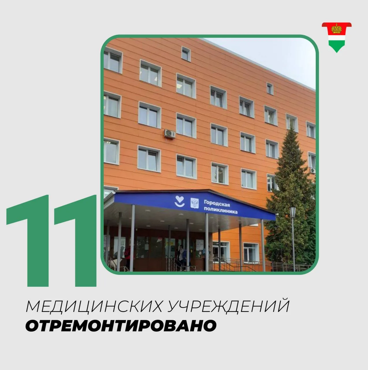 –Капитально отремонтировано 11 медицинских объектов, включая поликлиники в Калуге, Тарусе, Сухиничах, Думиничах и сельские ФАПы.
