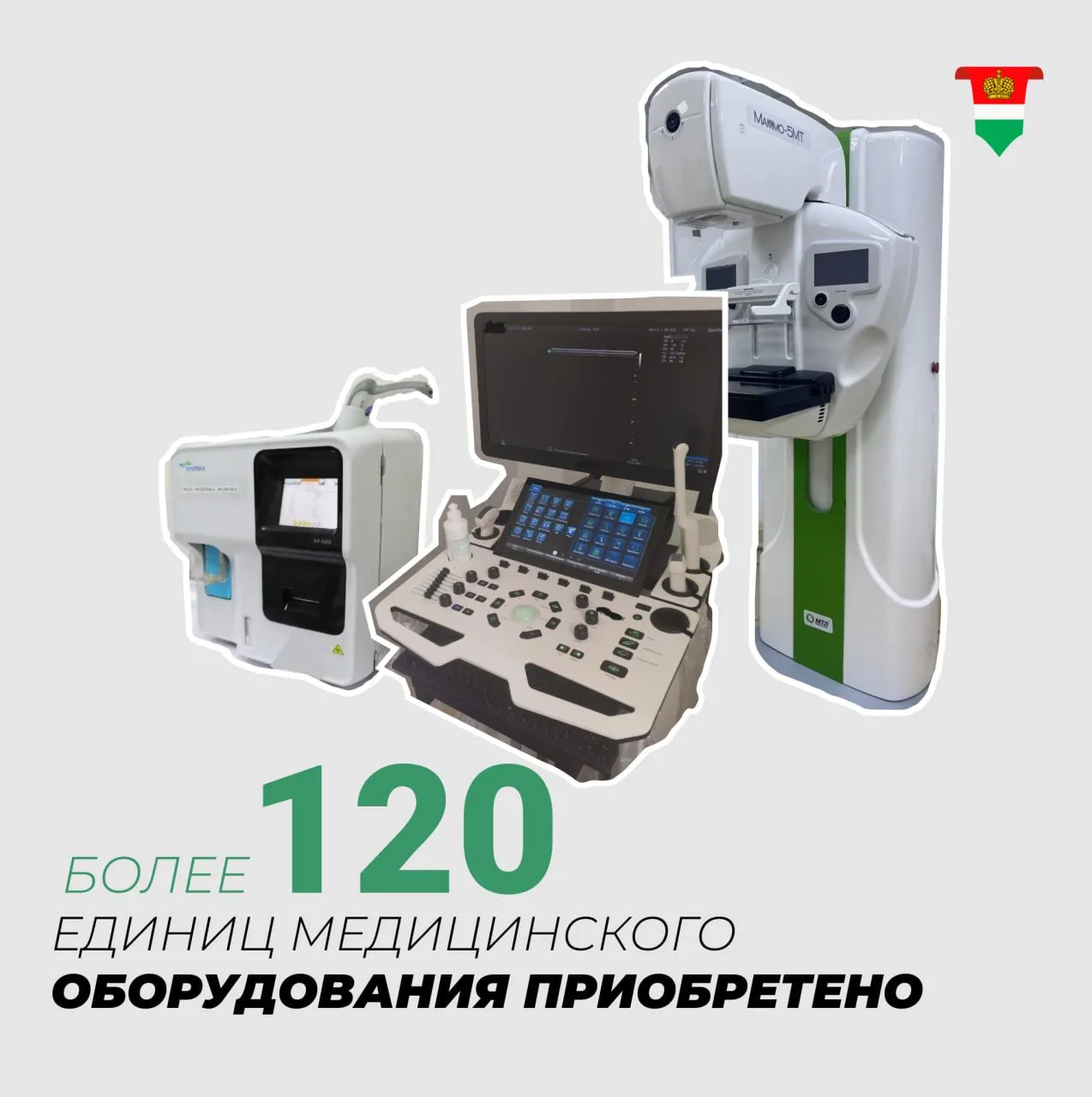 –Закуплено и введено в эксплуатацию 1214 единиц медицинской техники. Среди них: новый КТ-аппарат, 10 флюорографов, 15 рентгенов, 16 аппаратов УЗИ и 8 маммографов.