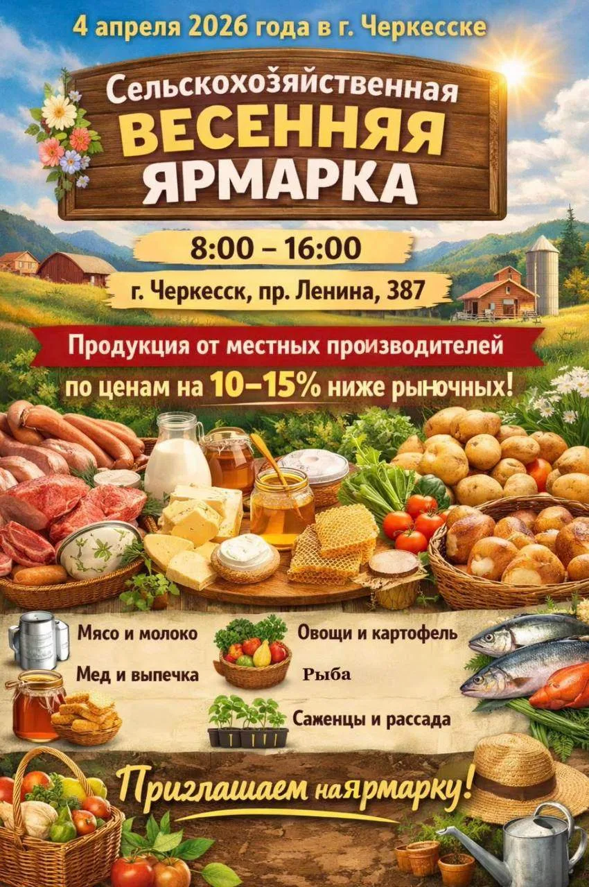 4 апреля 2026 года в городе Черкесске пройдет сельскохозяйственная весенняя ярмарка.