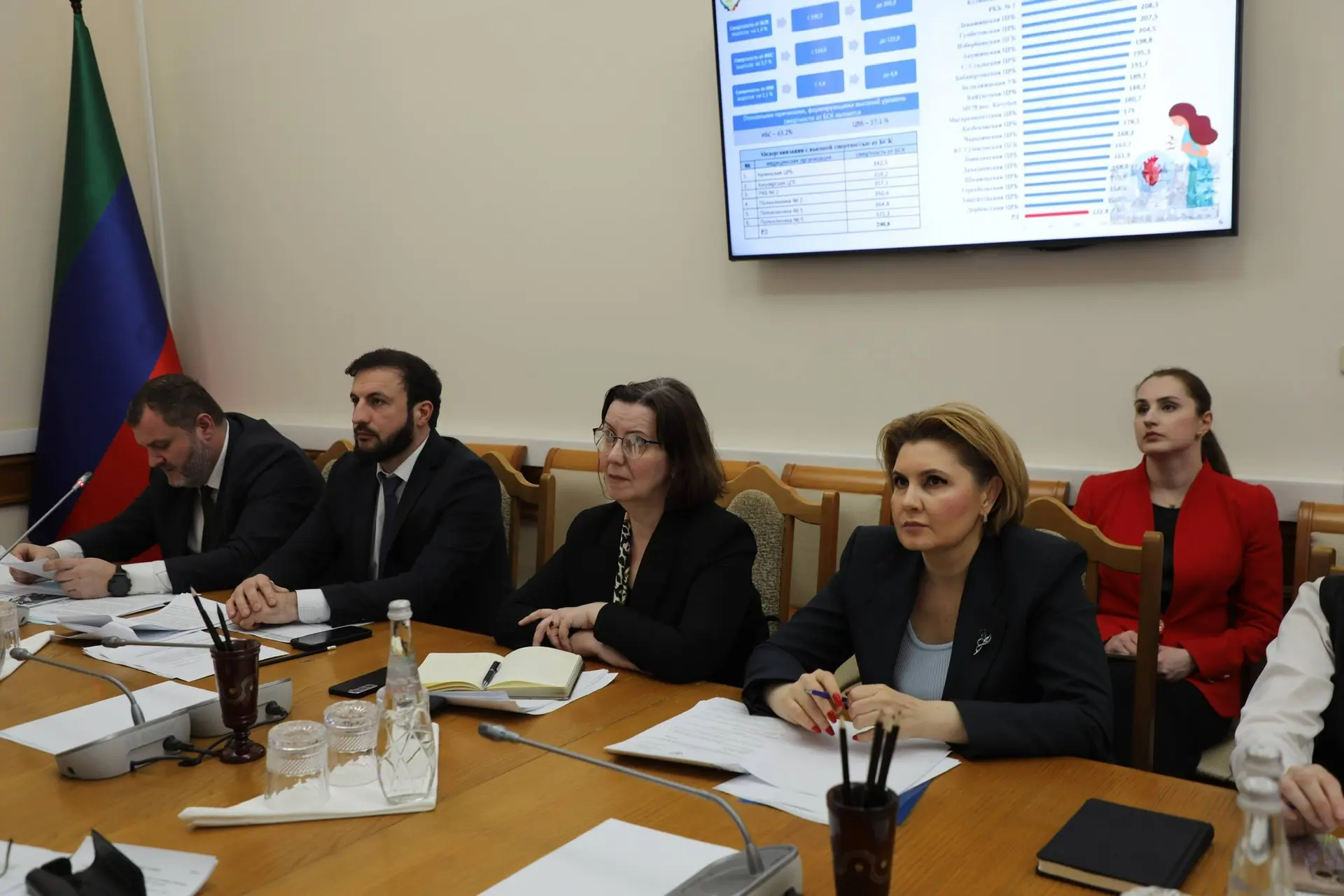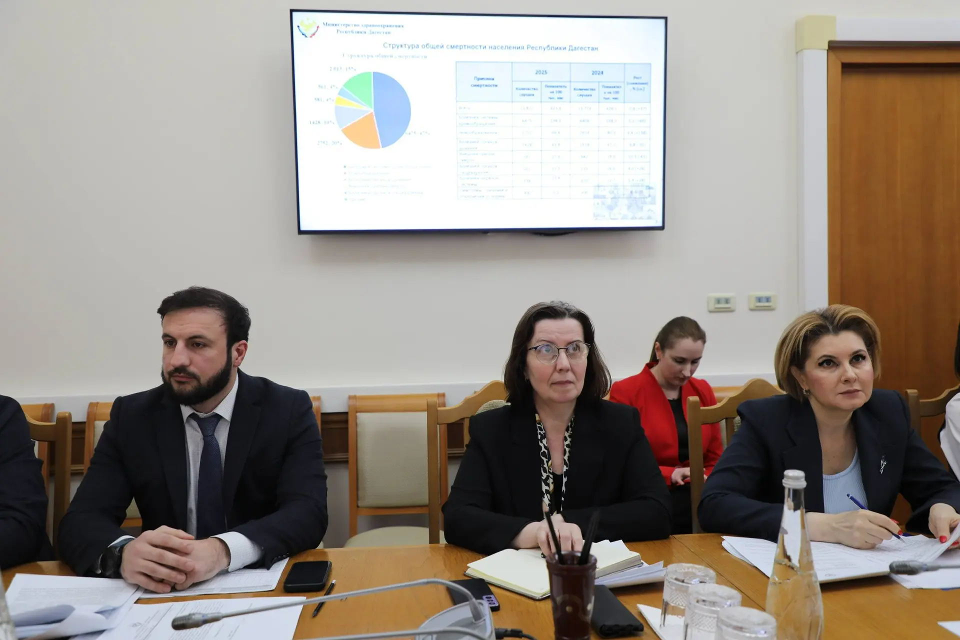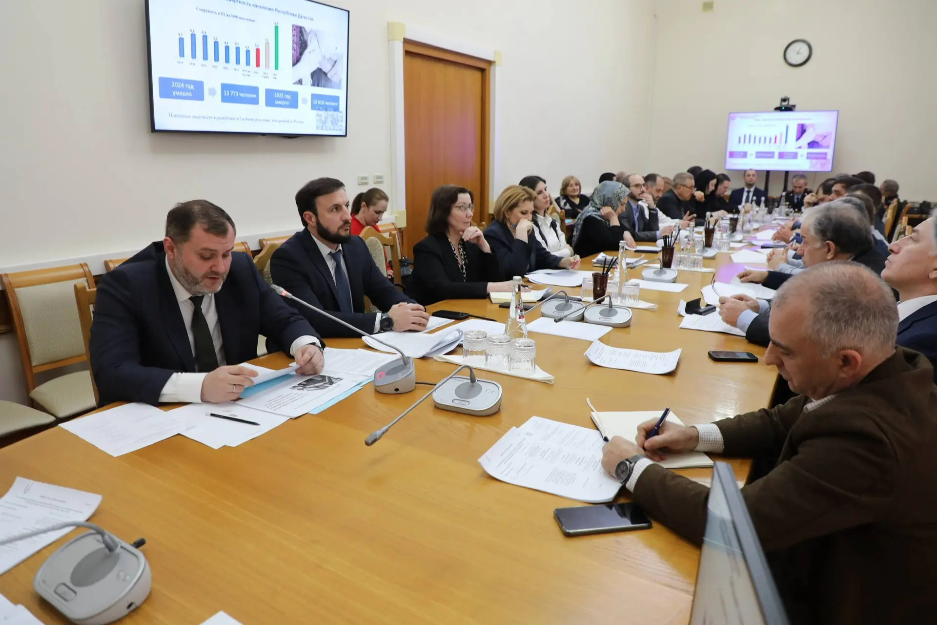 Переходя к обсуждению повестки в рамках Межведомственной комиссии по реализации мер, направленных на снижение смертности населения в республике, Абдурахман Махмудов заявил, что показатель смертности в республике в два и более раза ниже, чем средний по России. Показатель младенческой смертности также снизился на 30,3%. В структуре причин смертности среди всего населения на 1 месте болезни системы кровообращения, на 2 – новообразования, на 3 – болезни органов дыхания.