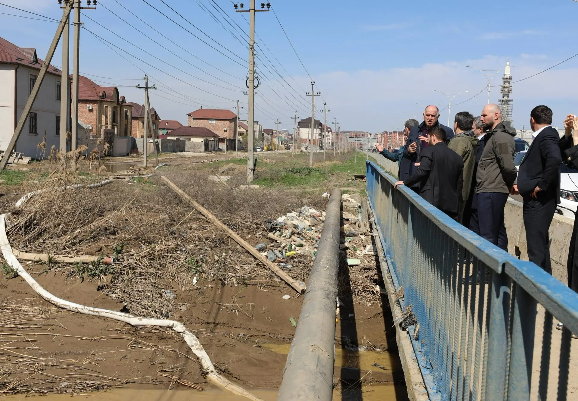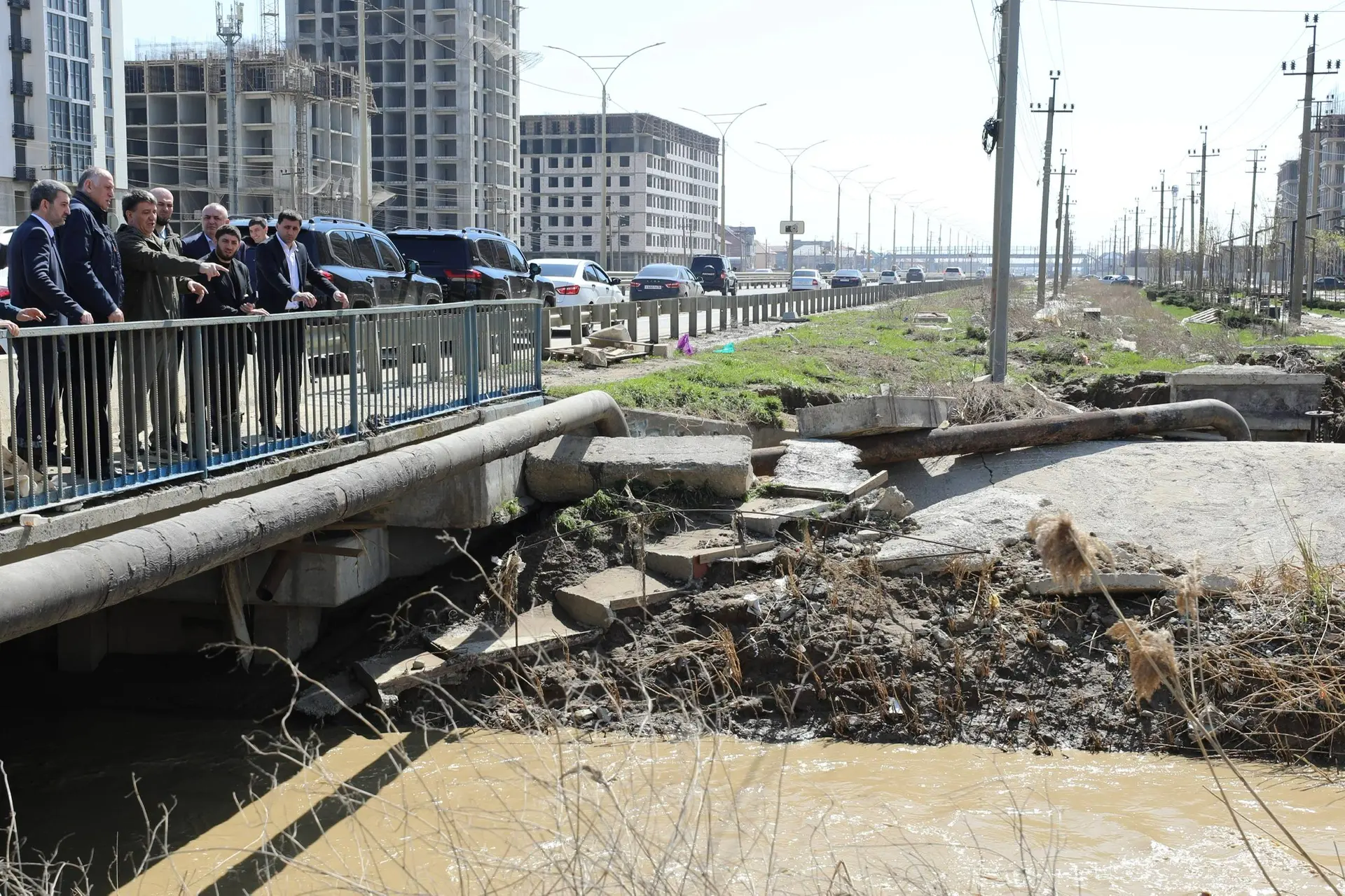 Председатель Правительства РД Абдулмуслим Абдулмуслимов осмотрел участок реки «Черкес-Озень» в Махачкале, в результате выходов из берегов которой произошло подтопление прилегающей территории, в том числе подстанции «Приморская».