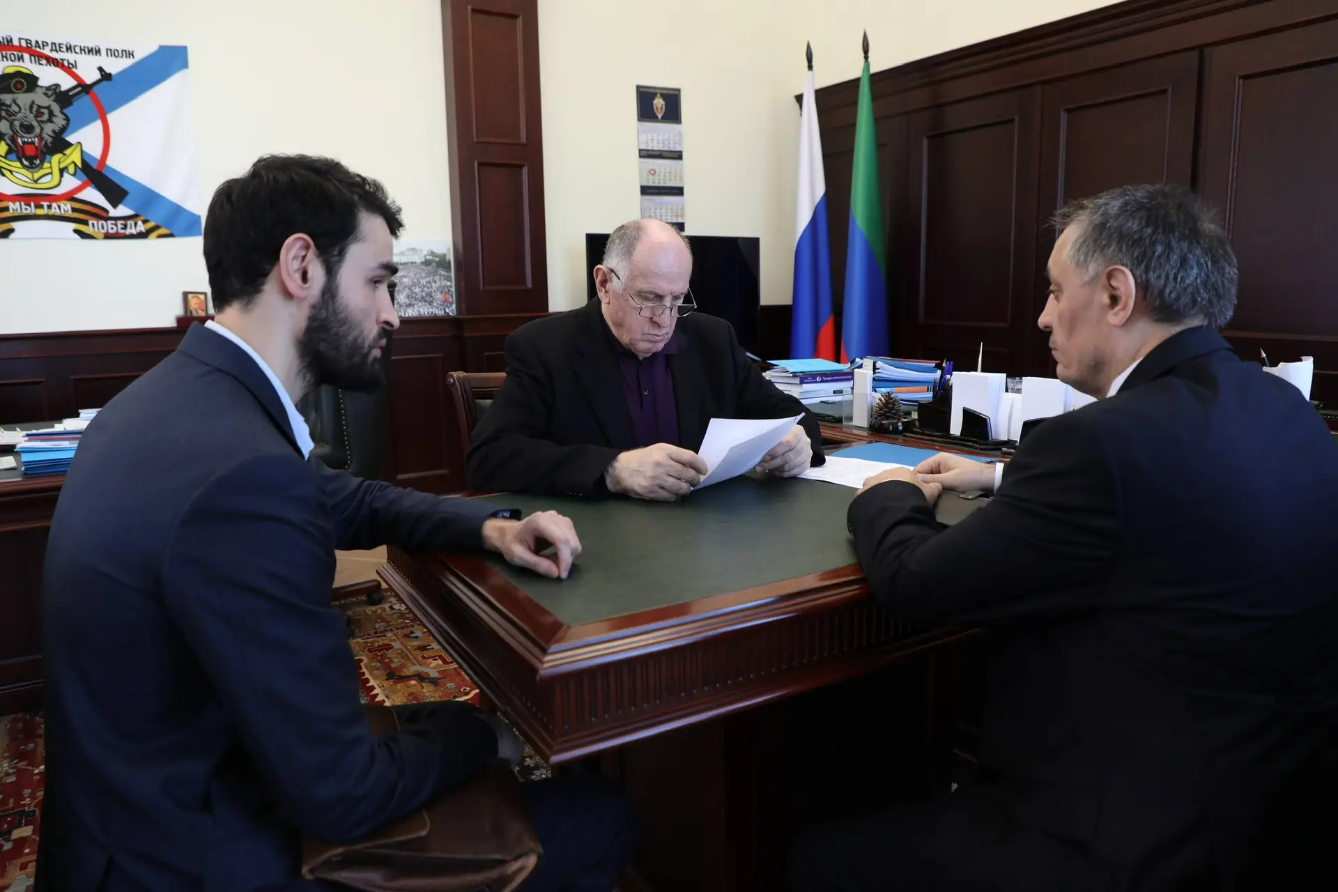 Председатель Правительства Дагестана Абдулмуслим Абдулмуслимов провел рабочую встречу с вице-премьером Абдурахманом Махмудовым и руководителем Управления Роспотребнадзора по РД Залимханом Омариевым.