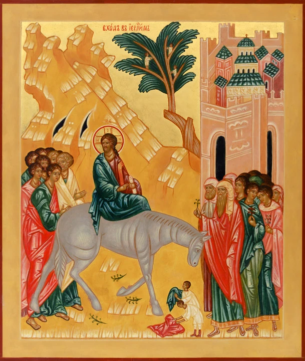Улицы тонут во всеобщем ликовании: огромные толпы людей встречают Христа как царя и Мессию. Они постилают перед ним пальмовые ветви и свои одежды, выкрикивая: «Осанна! Благословен грядущий во Имя Господне, Царь Израилев!» («Осанна» значит «Спасай нас»). Кто бы мог подумать, что уже через несколько дней эти же люди будут кричать «Распни Его!» во дворе римского префекта Иудеи Понтия Пилата.