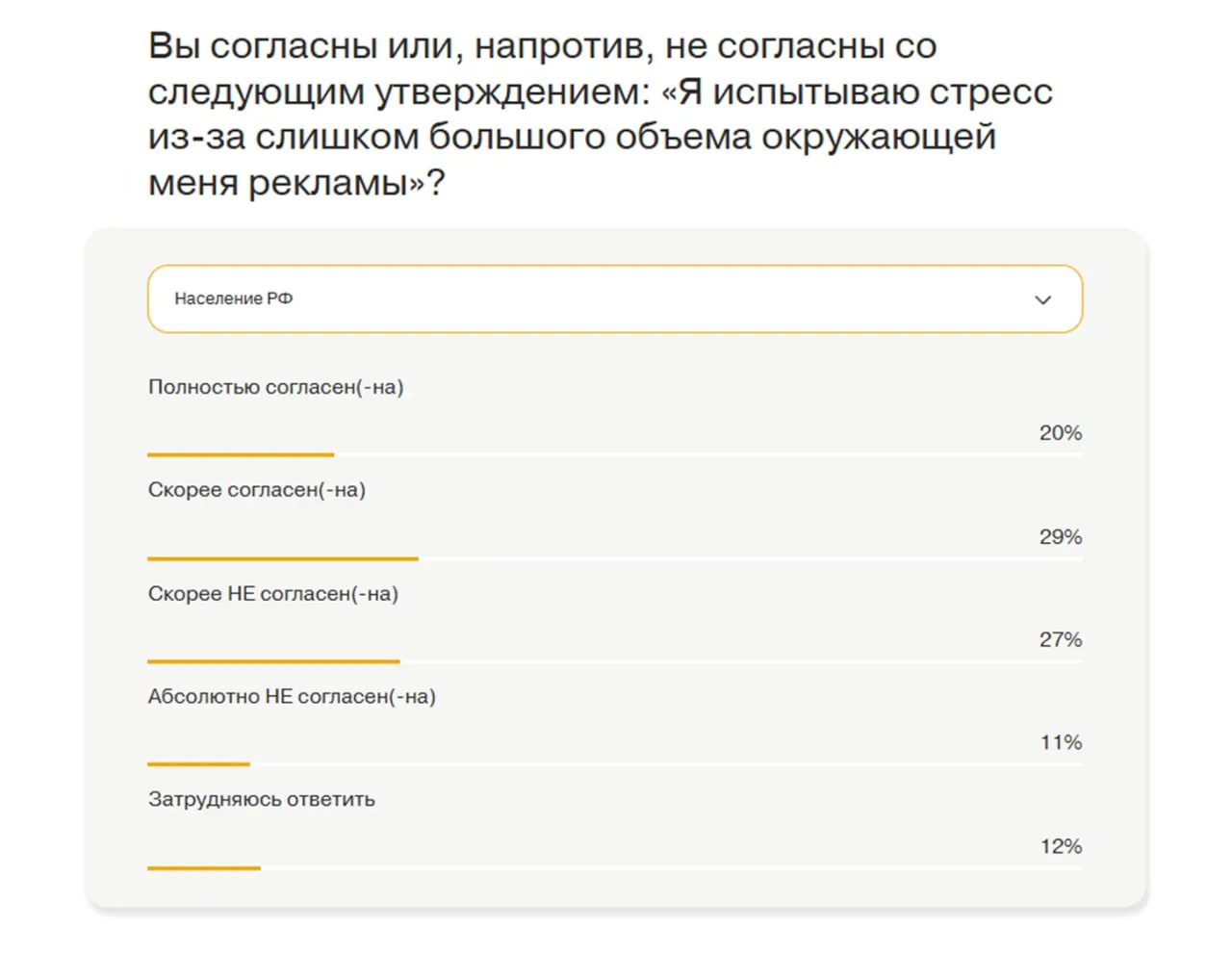 В целом же каждый второй россиянин стрессует из-за наплыва рекламы.