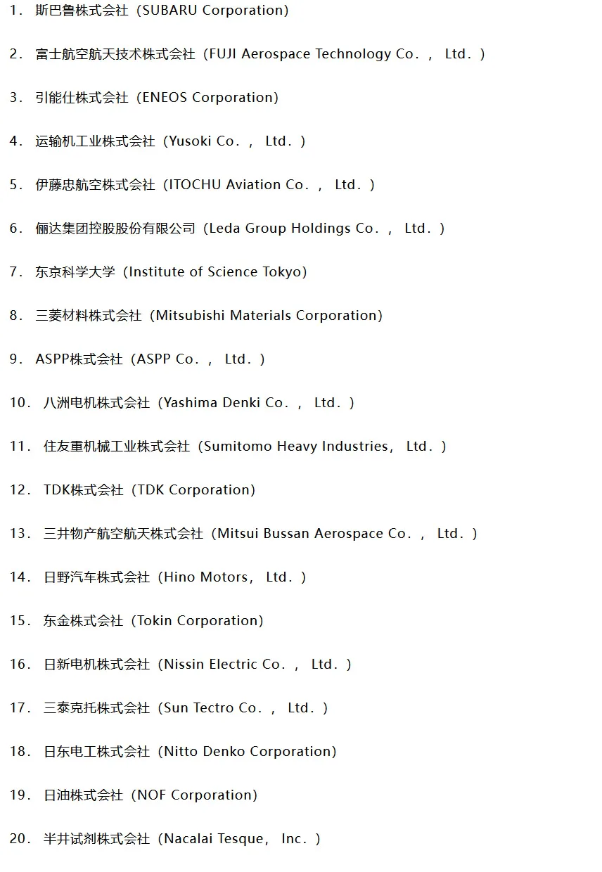 Среди перешедших на контроль — Мицубиси, Кавасаки, NEC и военные всякие типа IHI и JMU, сред взятых на проработку — Subaru, FUJI Aerospace, Nissin Electric, TDK и Sumitomo.