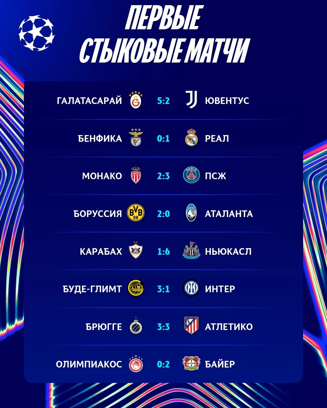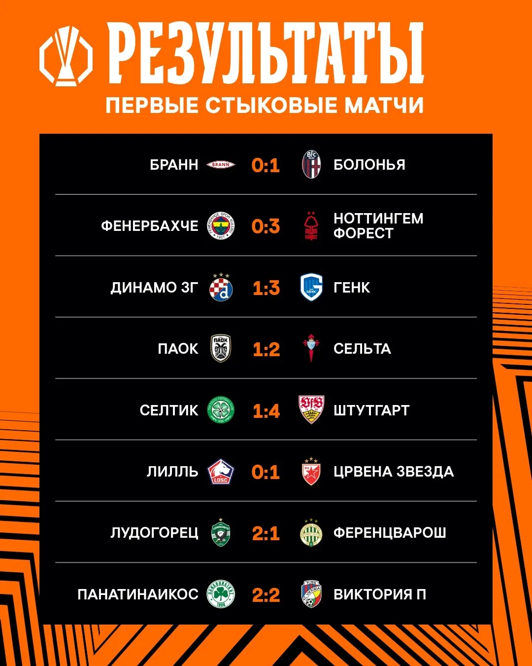Результаты первых стыковых матчей Лиги Европы и Лиги конференций.