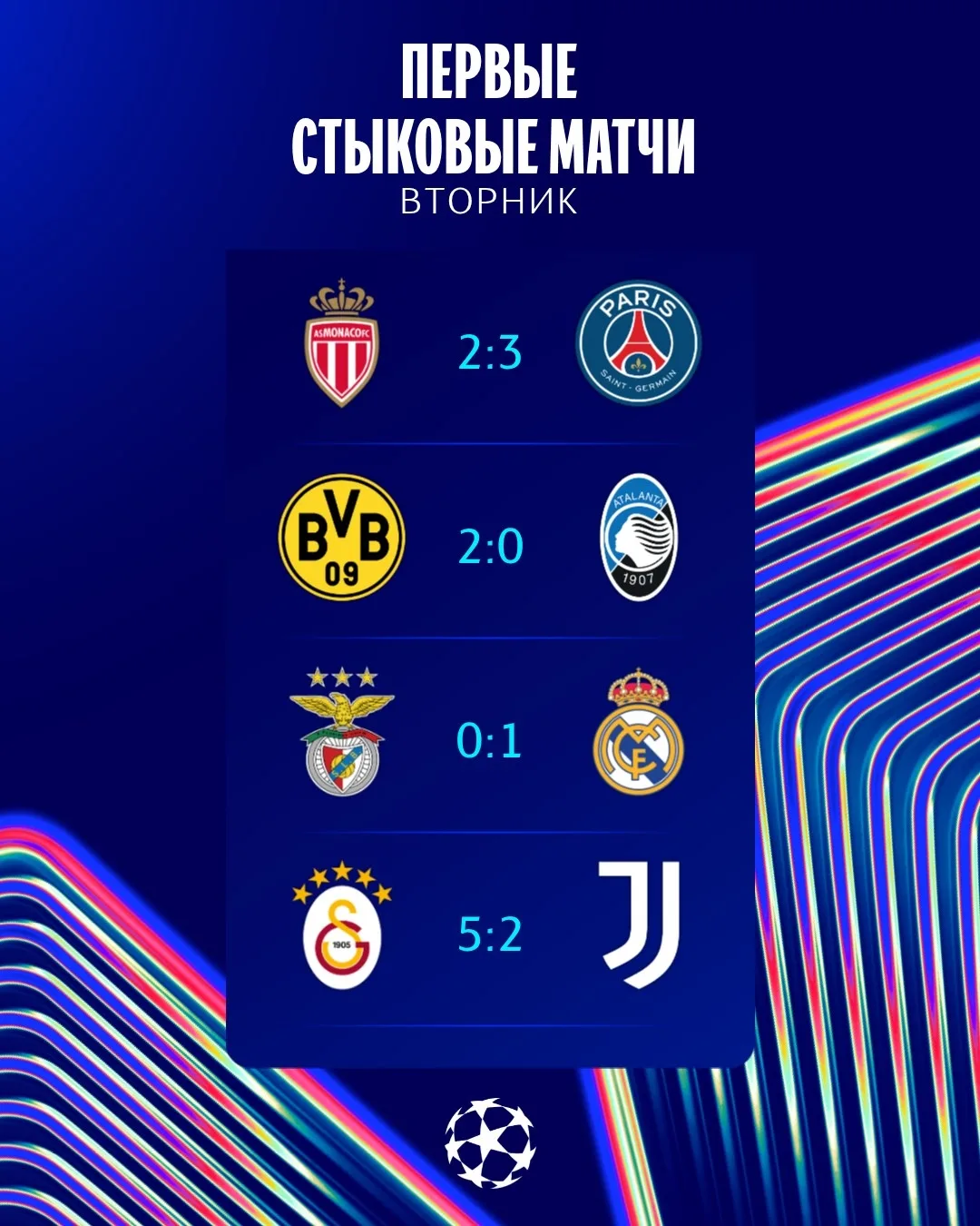 За бортом первой «восьмерки» остался «Реал», который в драматичном матче проиграл в гостях «Бенфике». Португальский клуб пропустил первым, сумел отыграться и повести в два мяча еще по итогам первого тайма, но второй мяч Килиана Мбаппе в этом матче и его 13-й на общем этапе вытеснил лиссабонцев из топ-24. «Бенфика» оставалась вне зоны плей-офф, пока на 98-й минуте Жозе Моуринью не отправил в чужую штрафную вратаря Анатолия Трубина, который забил решающий мяч.