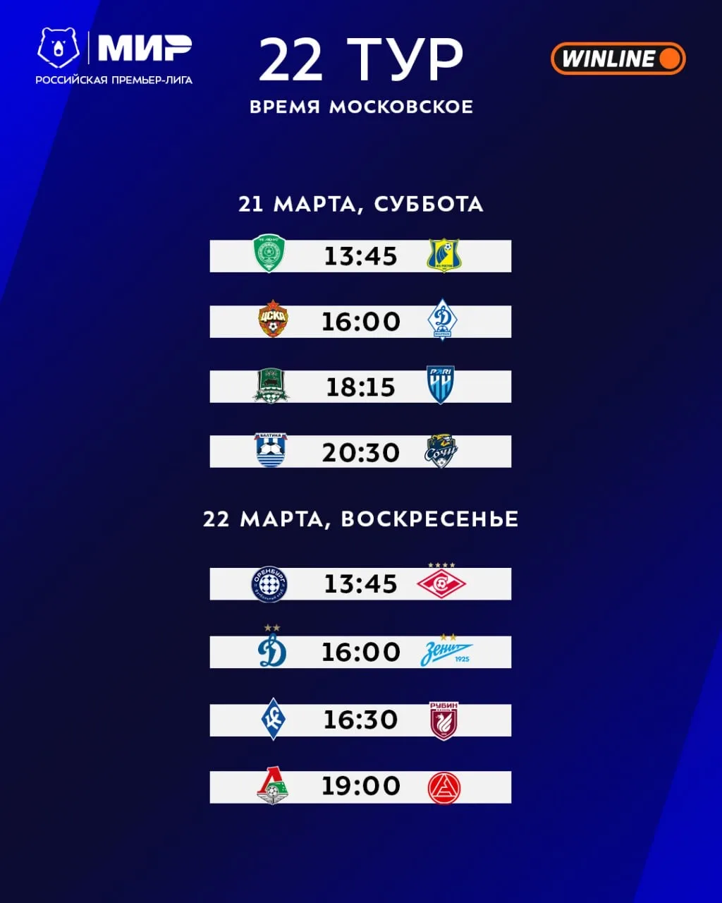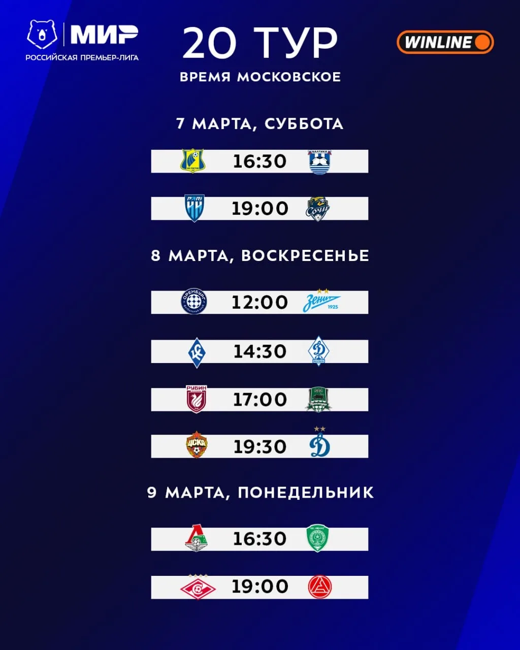 Опубликовано расписание матчей на первые четыре тура чемпионата России после перерыва.