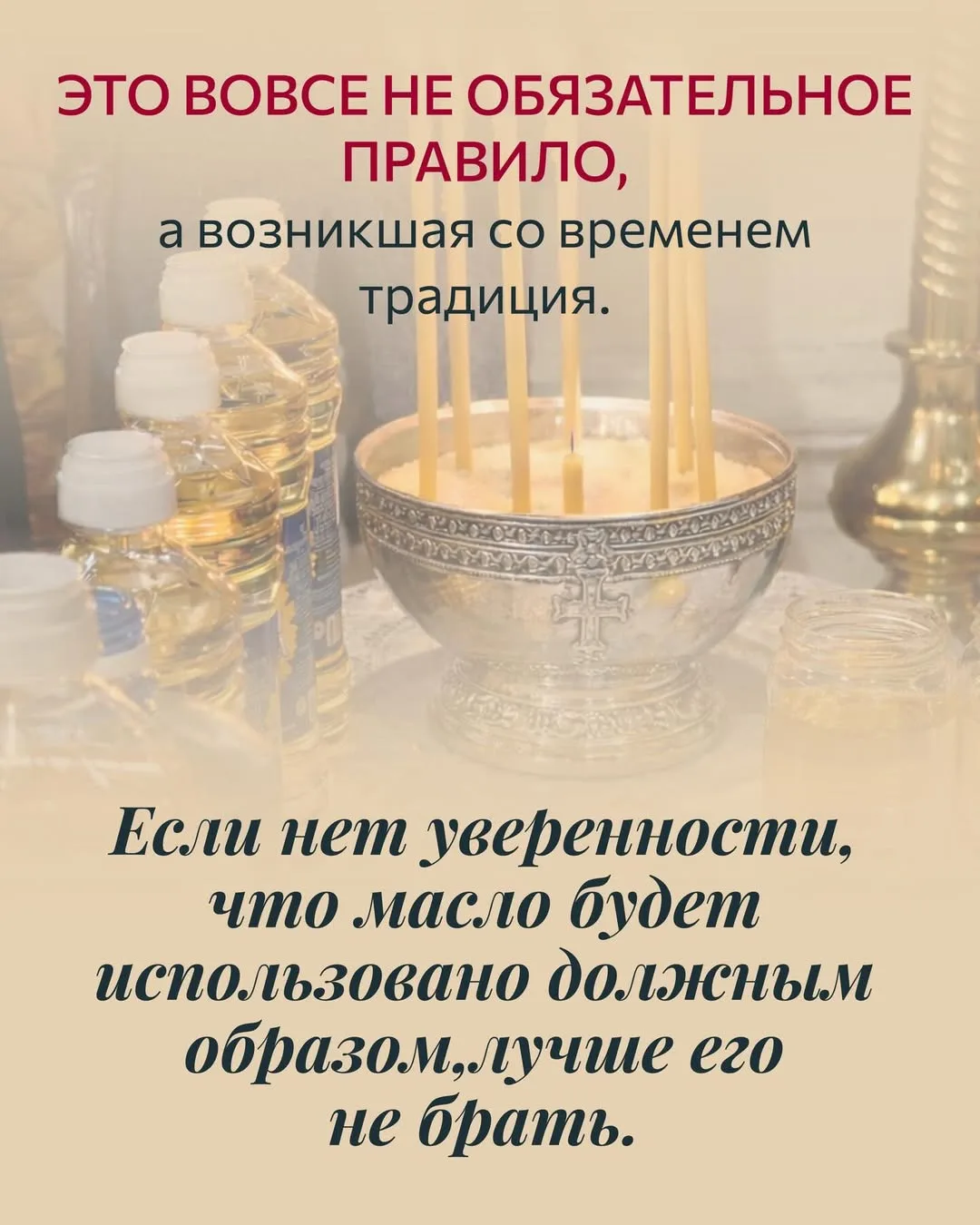 ❗ Нельзя утилизировать его с мусором и прочими домашними отходами (так как масло освящено).