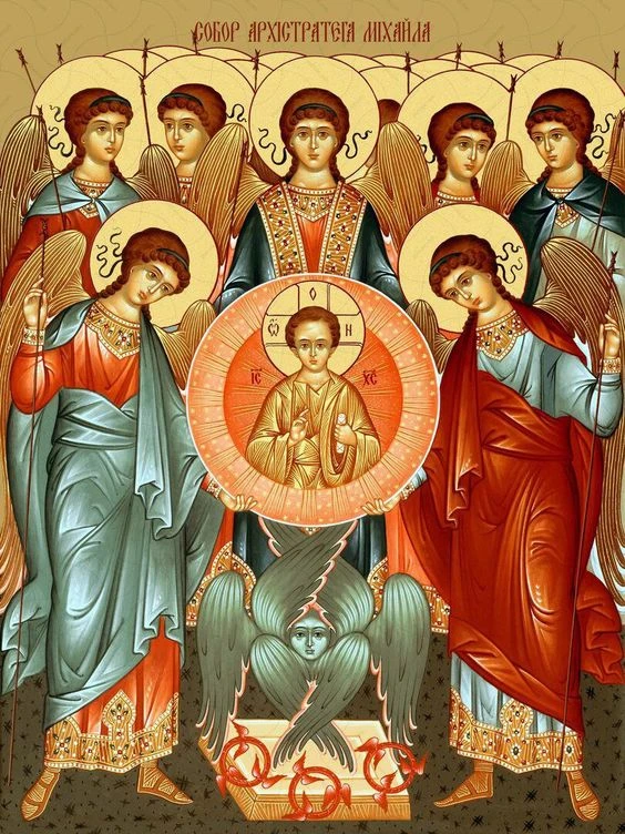🕯️В православной традиции принято разделять Ангелов на девять чинов (или степеней), каждый из которых имеет свою задачу по поддержанию порядка и гармонии в мире духовном и материальном. Михаил же возглавляет воинства небесные как главный полководец Бога, покровительствующий верующим, защищающий слабых и дарующий силу тем, кто искренне молится ему о помощи.
