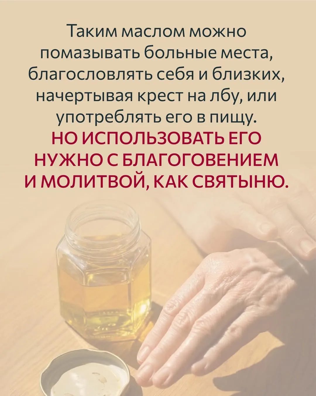 Сейчас же многие берут этот елей, чтобы помазываться им дома (обычно мажут больные места).