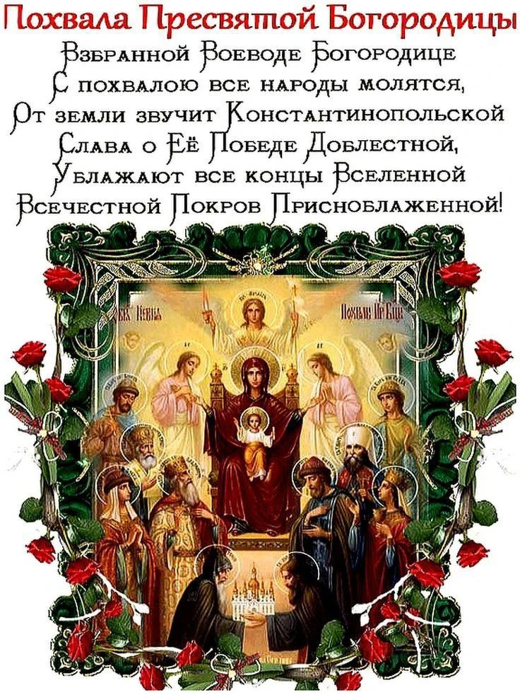 🔹 Акафист Похвала Богородице — это молебное благодарственное пение, посвященное Той, Которая родила Спасителя всем миру. Раз в году — на пятой неделе Великого поста — верующие собираются в храме, чтобы вместе обратиться к Ней. Есть немало хвалебных песен, посвященных Иисусу, святым, церковным праздникам, но все они появились позже, чем Акафист Богоматери. Именно он стал началом новой гимнографической традиции в VI-VII веках. И до сих пор это единственный из всех акафистов, который вписан в богослужебный устав и включен непосредственно в церковную службу.