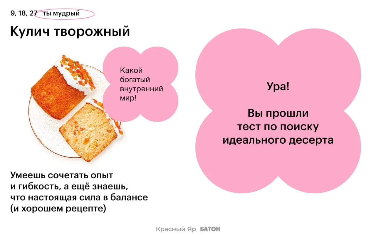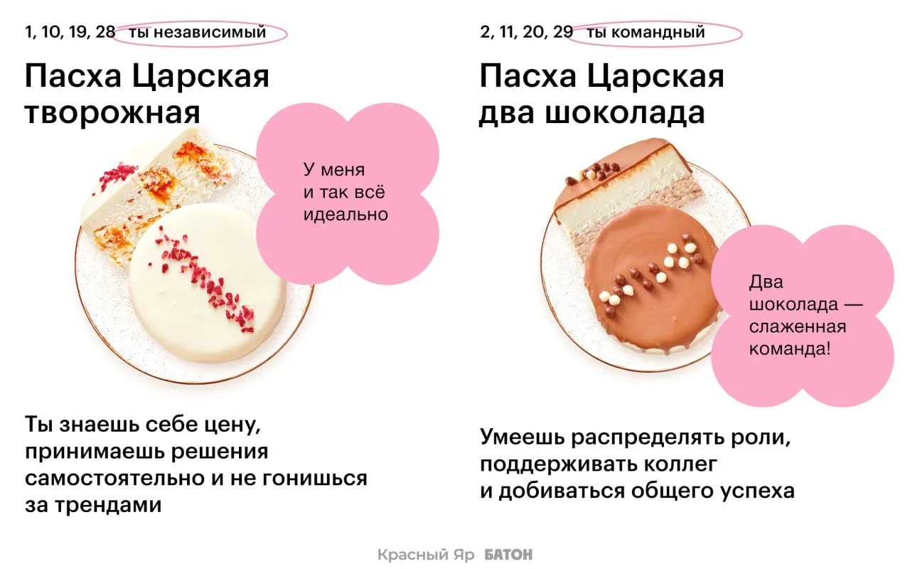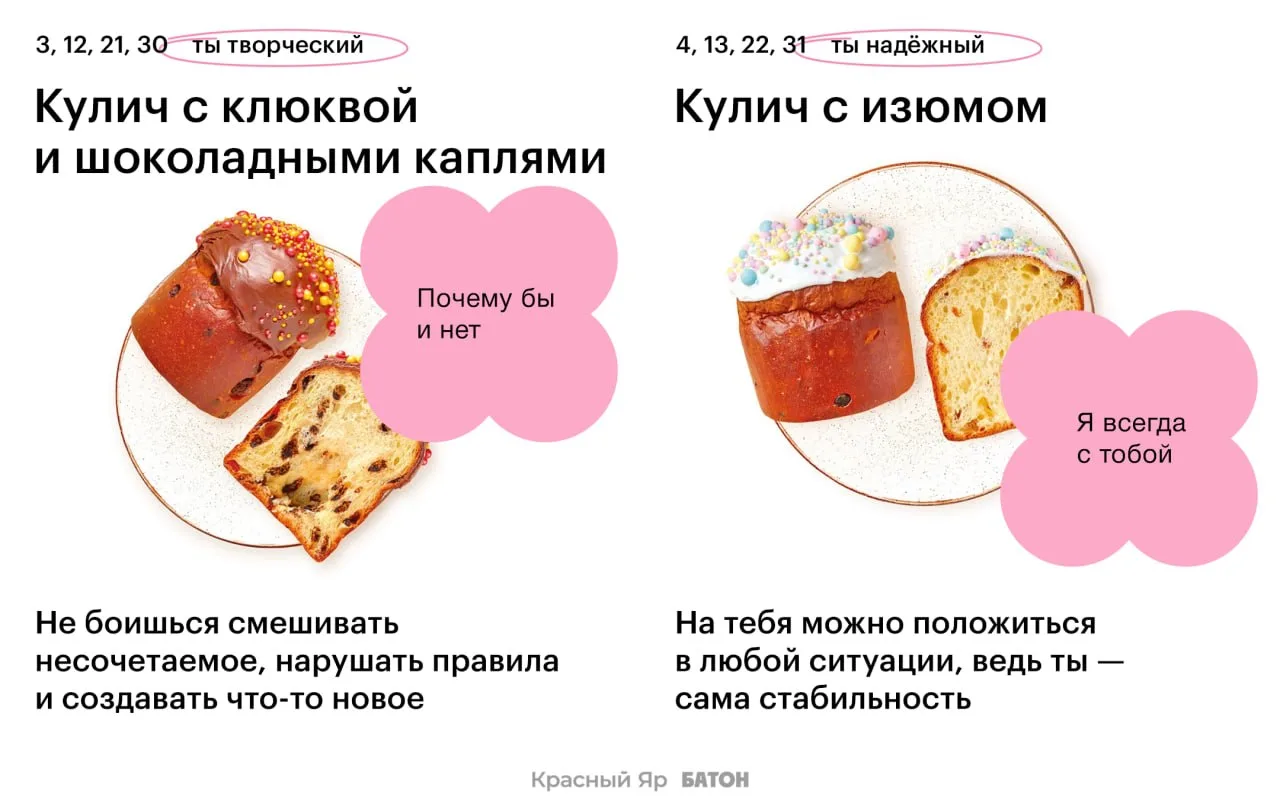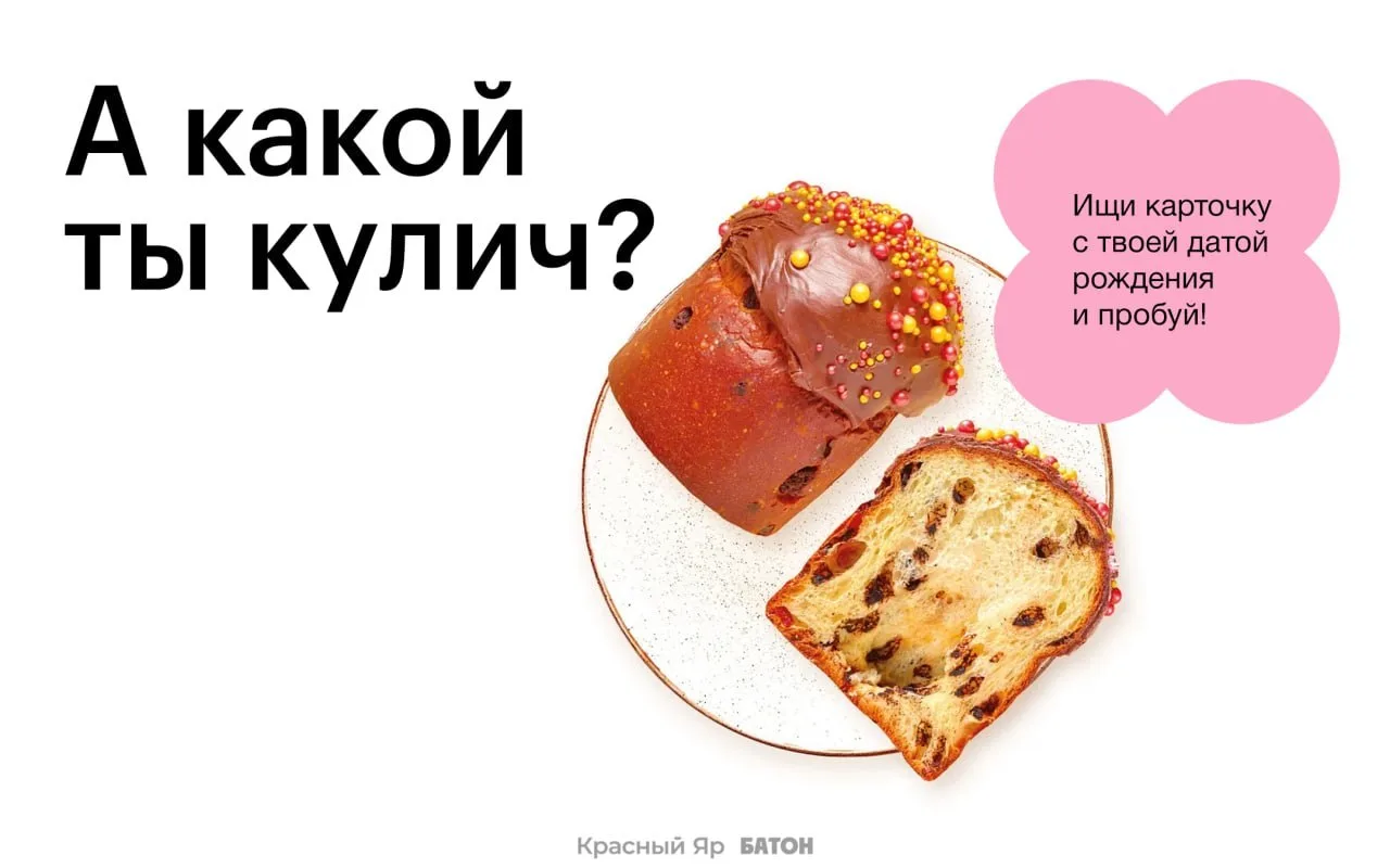 «Город Прима» и сеть гастрономов «Красный Яр» и дискаунтеров «Батон» помогут найти тот самый десерт, что подходит по характеру именно вам: https://gorodprima.ru/2026/04/06/a-kakoj-ty-kulich-vyberi-pashalnuyu-vypechku-sebe-po-duhu/