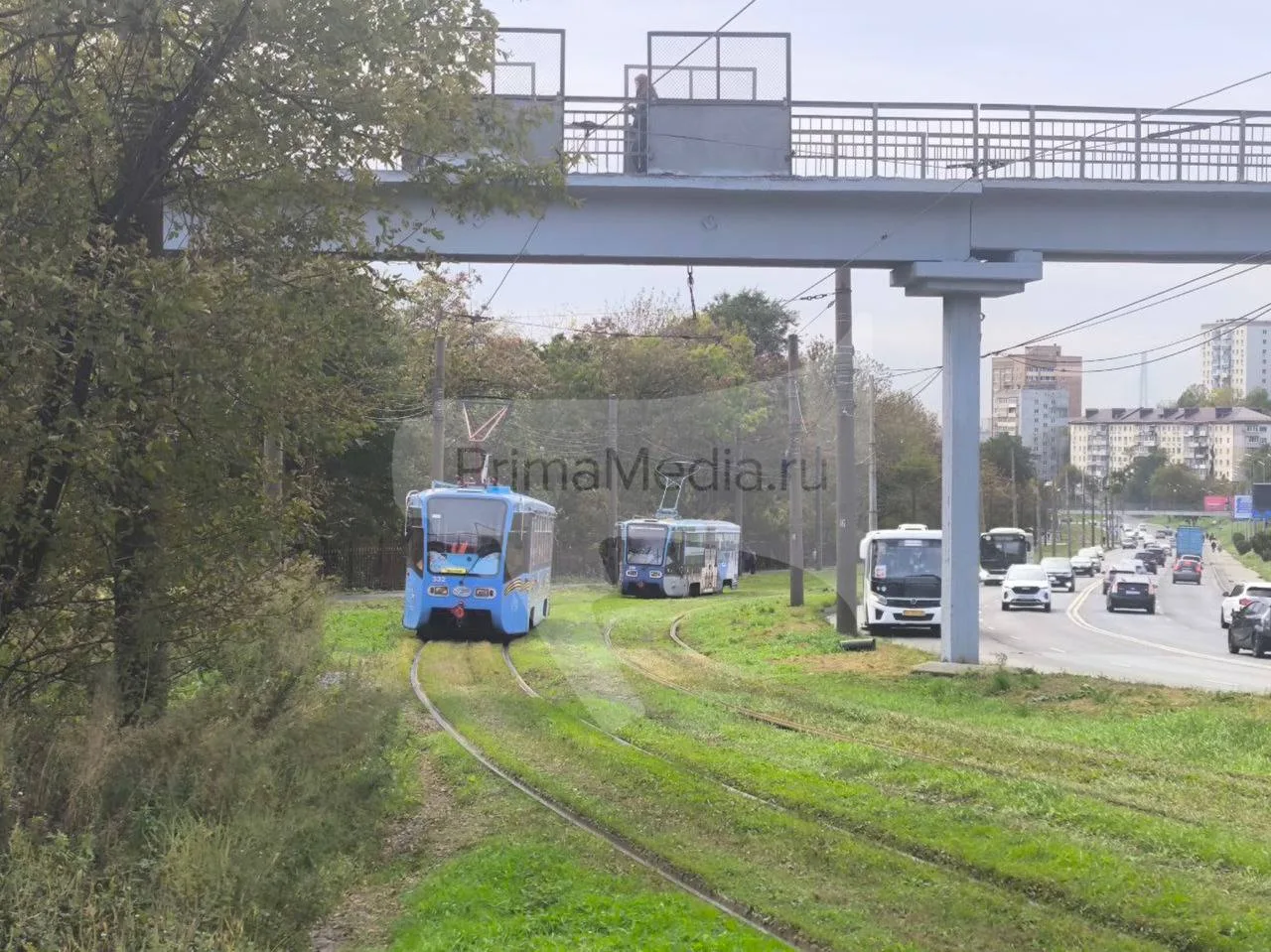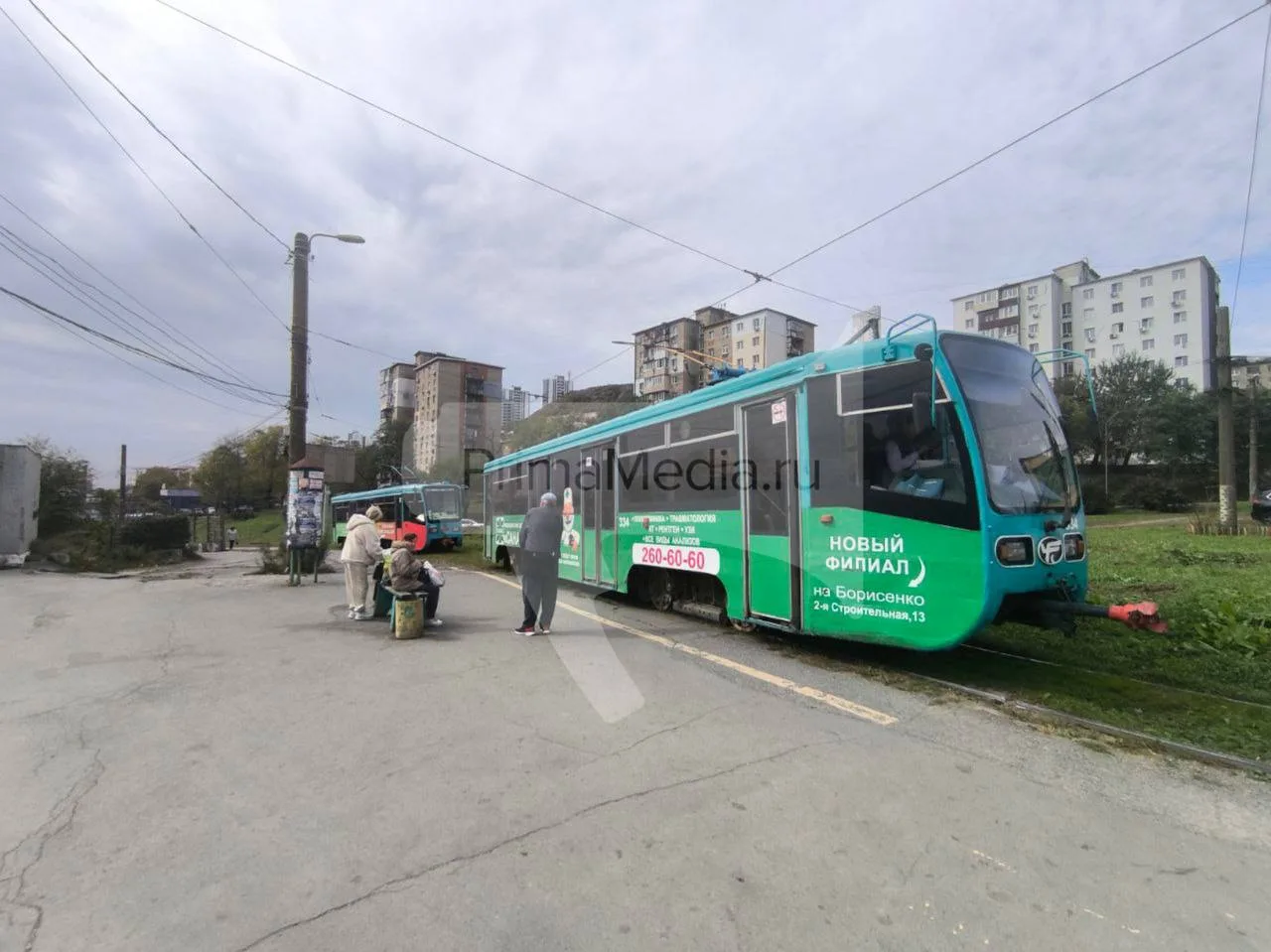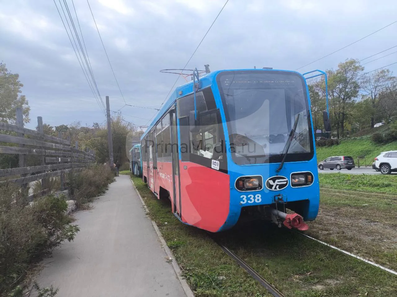 ❗️Сотрудников полиции ждали около часа. Между тем весь парк трамваев (шесть штук) стоит на остановке "Минный городок".