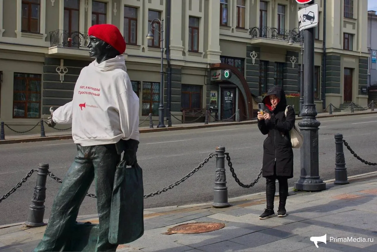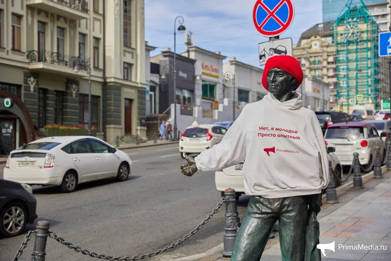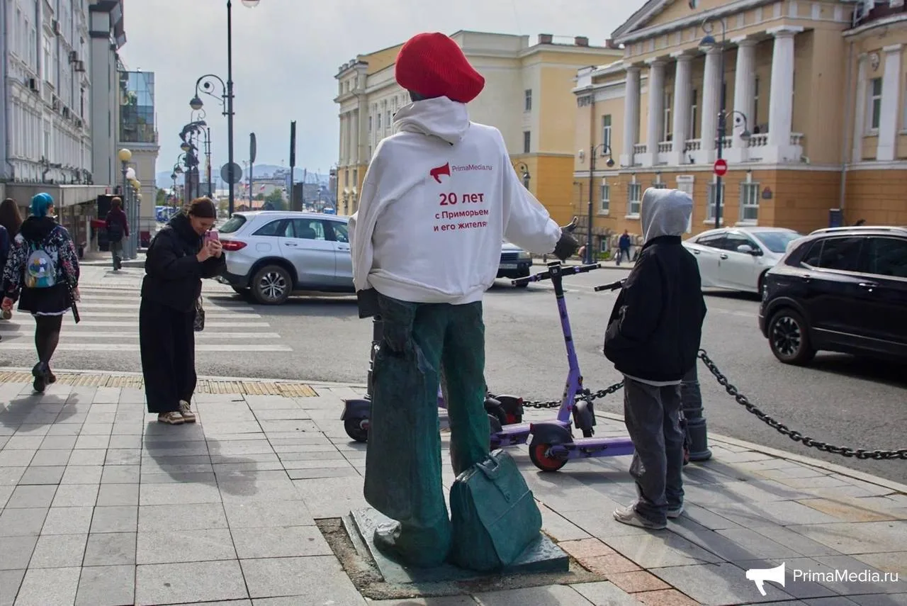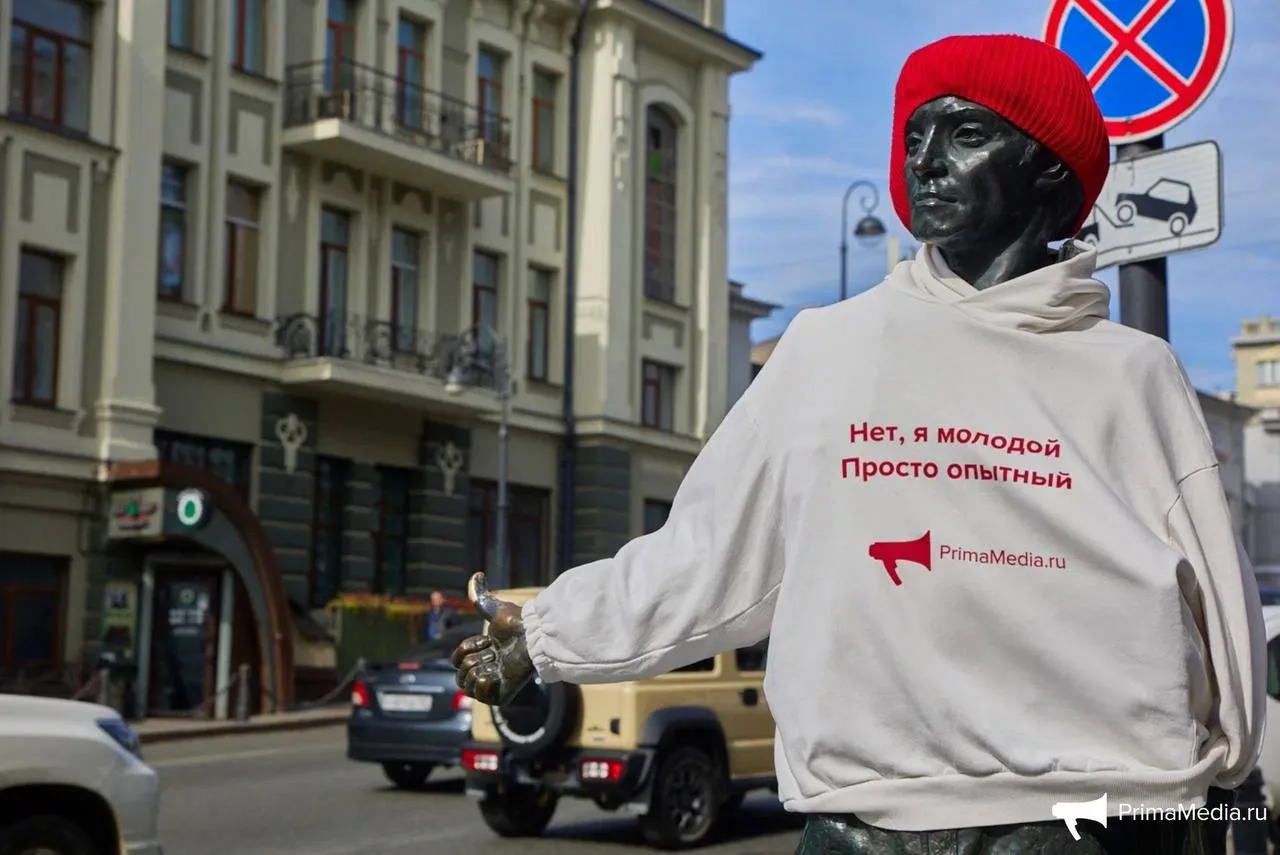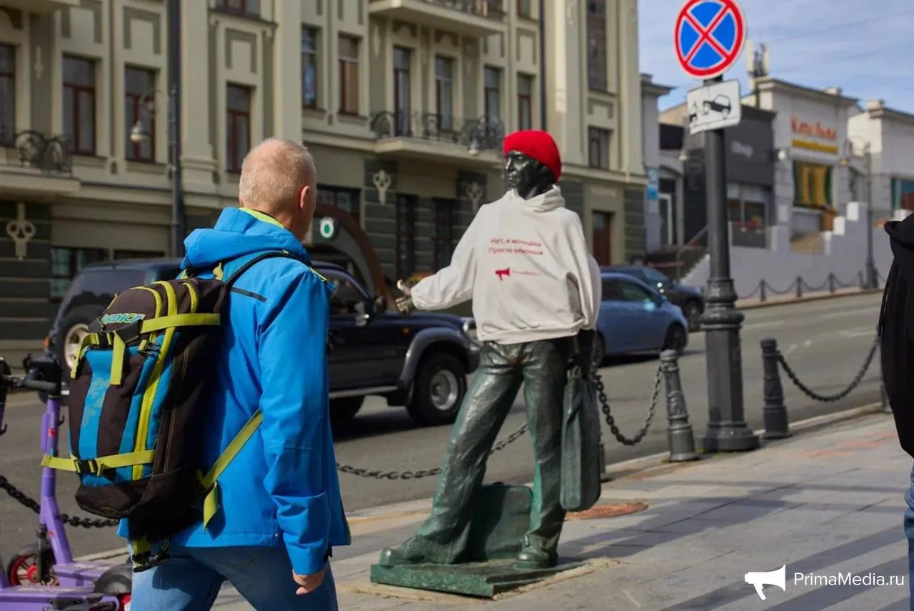 😍 Теперь не замерзнет: статую морячка в центре Владивостока приодели в брендированный худи ИА PrimaMedia