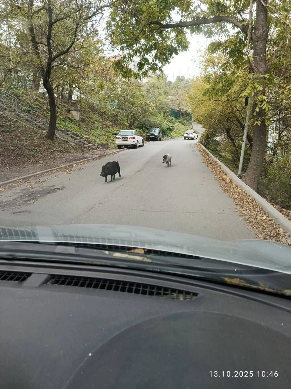 🐖 С подружкой на прогулке: на одной из улиц Владивостока можно встретить двух гуляющих свинок