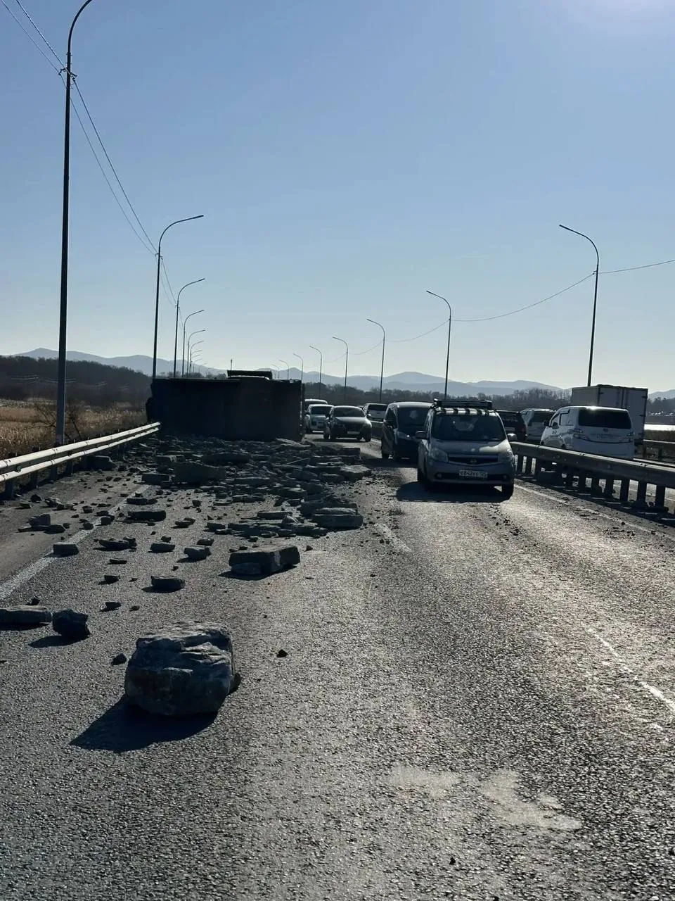 ➡️ По предварительным данным, водитель самосвала, направляясь из Владивостока в Уссурийск, не выбрал безопасную скорость и не справился с управлением. В результате он столкнулся с двумя автомобилями, припаркованными на обочине, после чего самосвал опрокинулся.