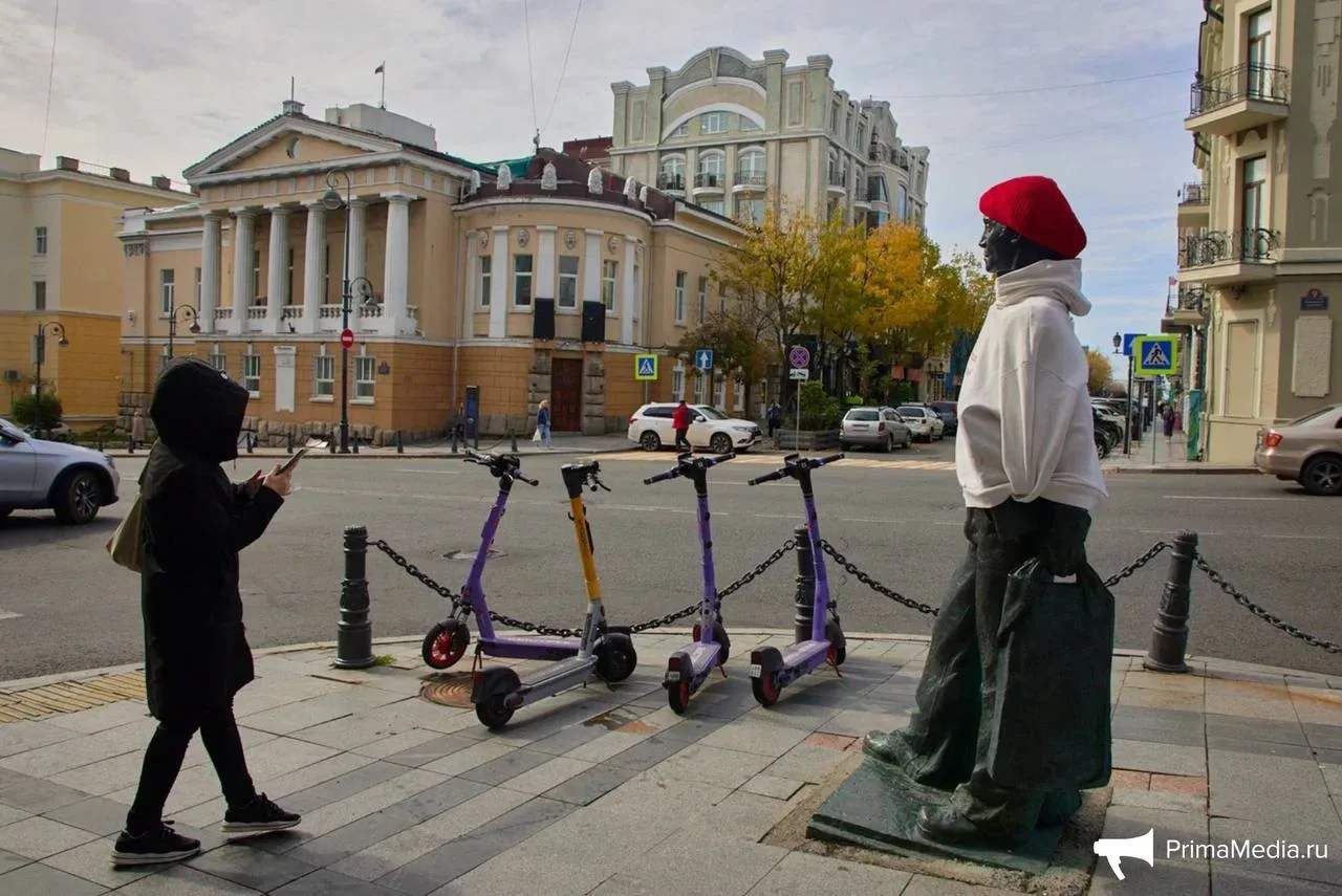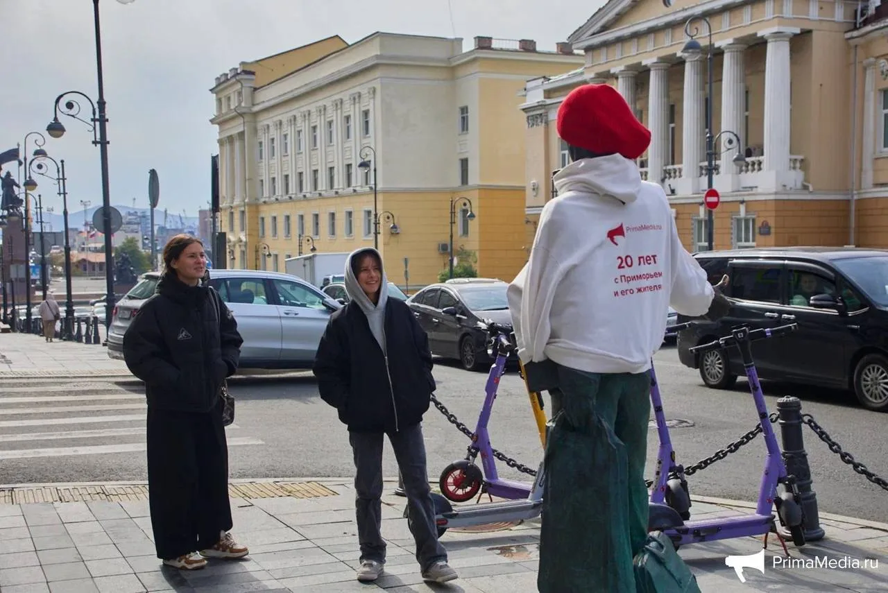 📸 Жители и гости дальневосточной столицы с удовольствием останавливались и фотографировались с морячком в модном худи.