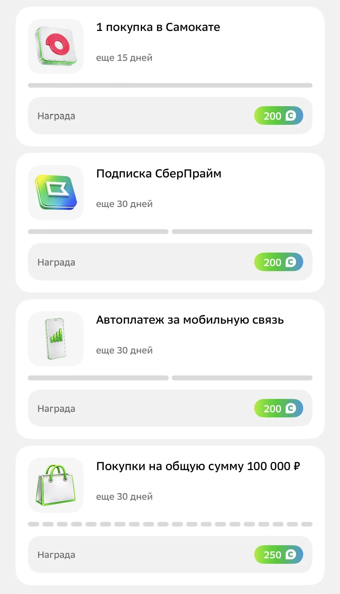 В приложении Сбера появились задания за выполнение которых начисляют бонусы спасибо!