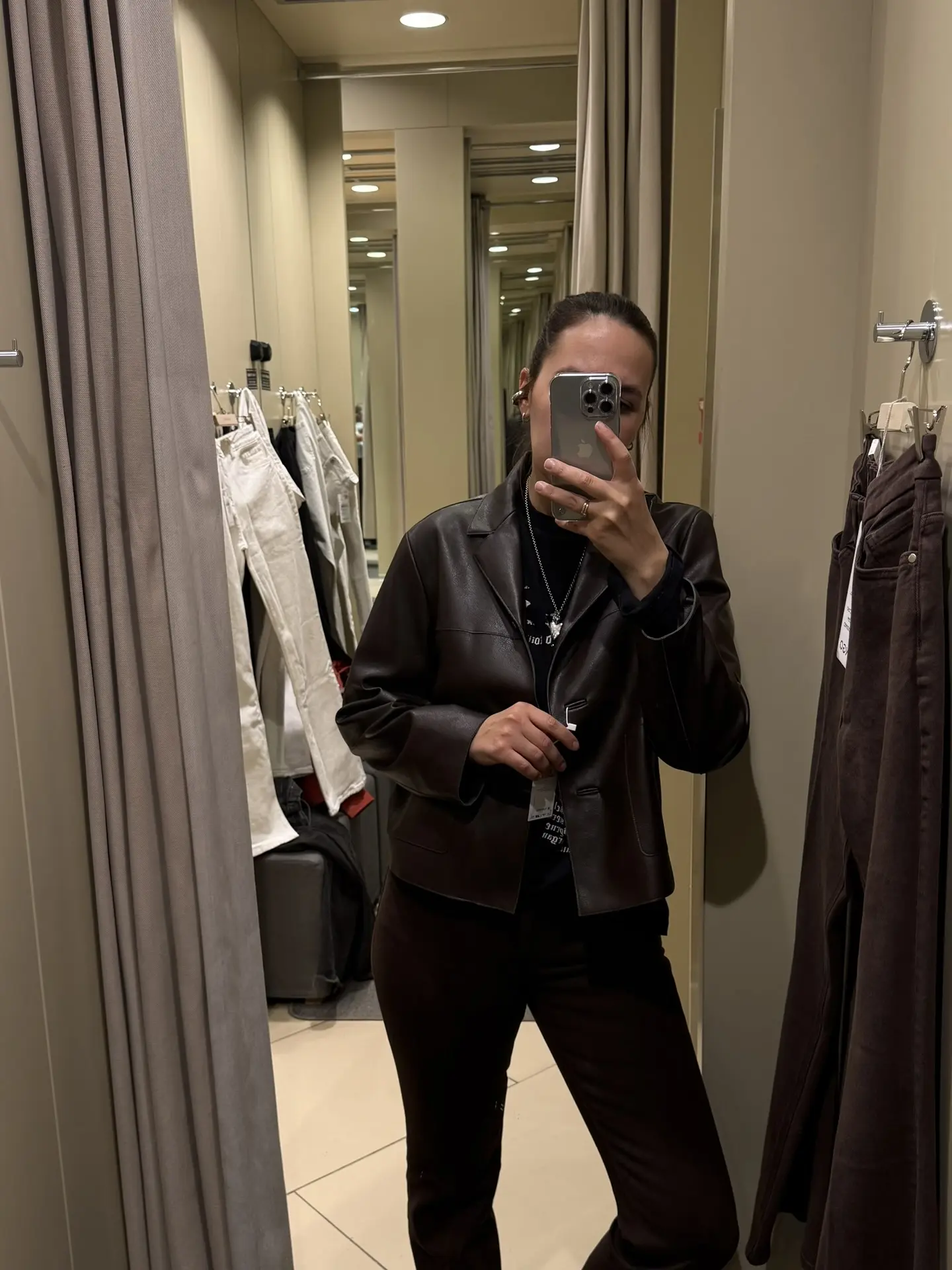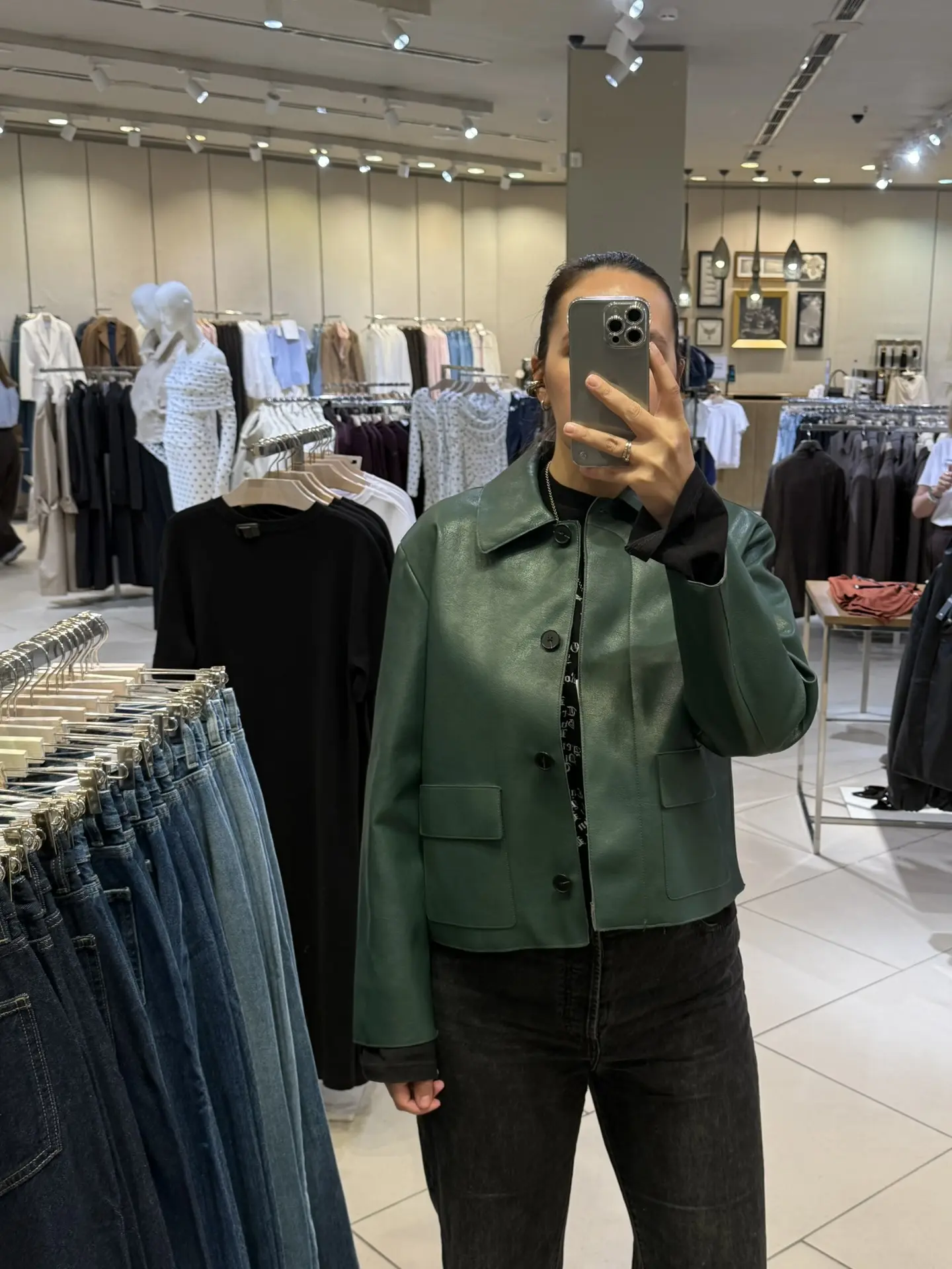 Сначала увидела у Полины @welcometoyourselfff куртки из кожзама Mango, а потом увидела у нас! Очень понравился цвет коричневой, но не был моего размера. Обе мерила в размере XL, но думаю, что лучше брать размер в размер.