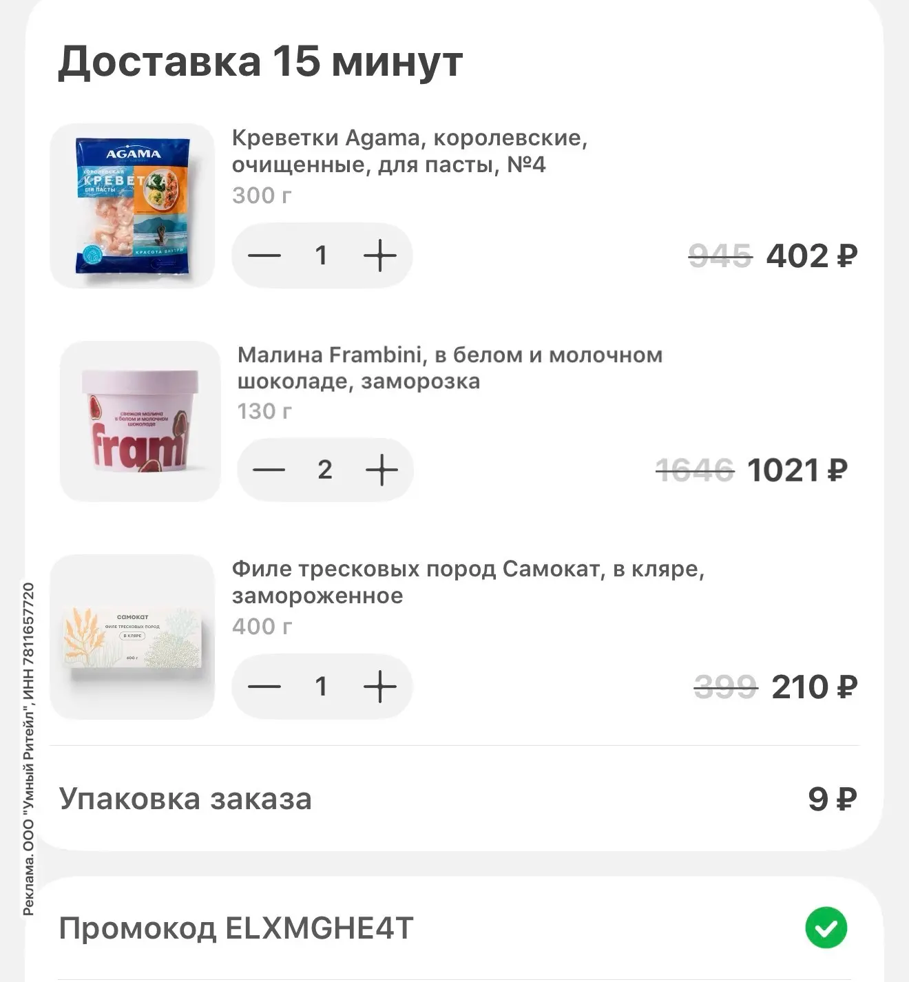Берем у продавца 150 бонусов и в корзине применяем примокод NONI650