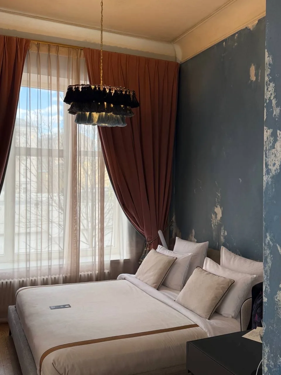 Бутик-отель из 12 номеров. В этот раз мы останавливались в номере IX - Сапфировый. В номере есть всё необходимое, полотенца, халат, отпариватель и очень удобные тапочки. Высоченный потолок! Даже не знаю сколько метров. Очень удобная кровать, мы еще попросили дополнительное одеяло и это было 10/10.