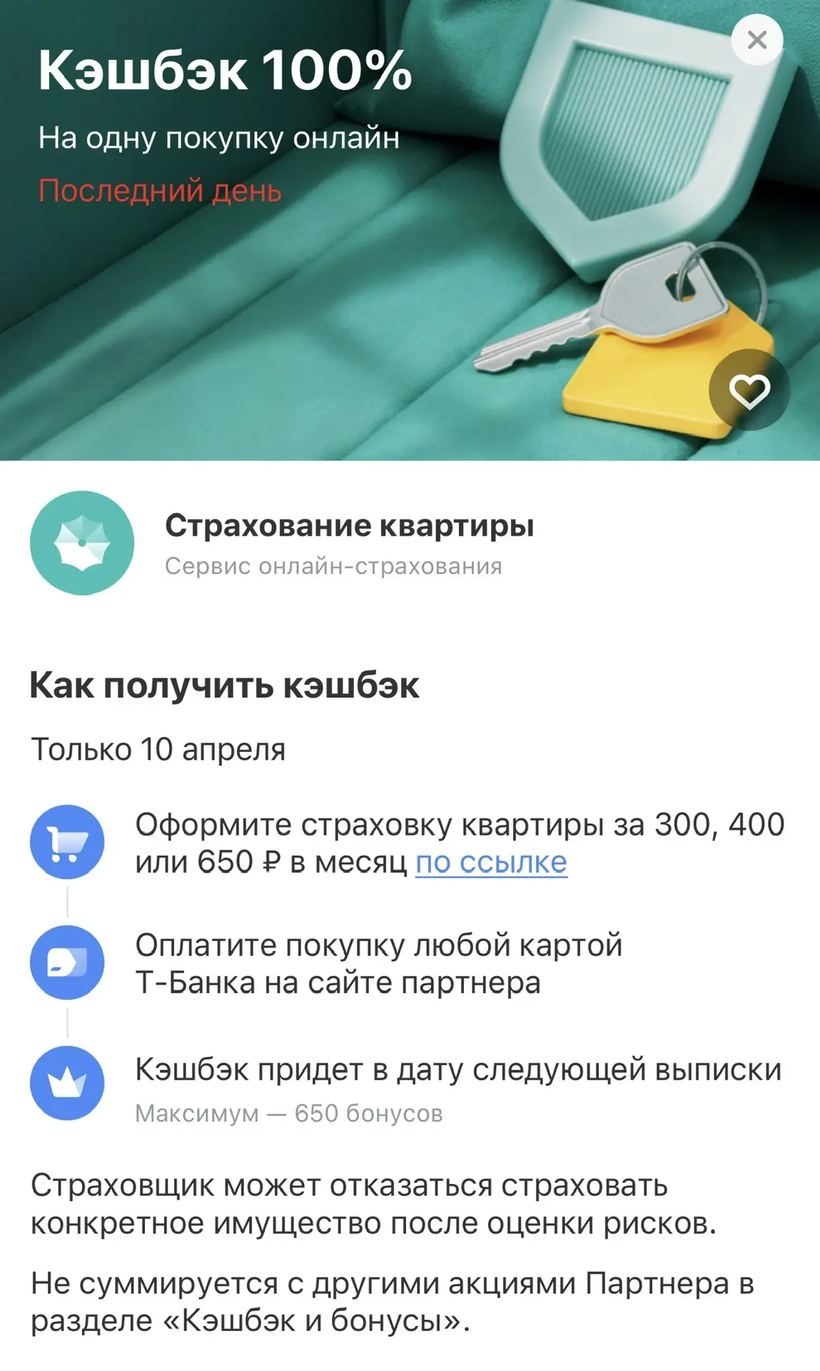 100% на страхование квартиры и на детский сок Сады Придонья.