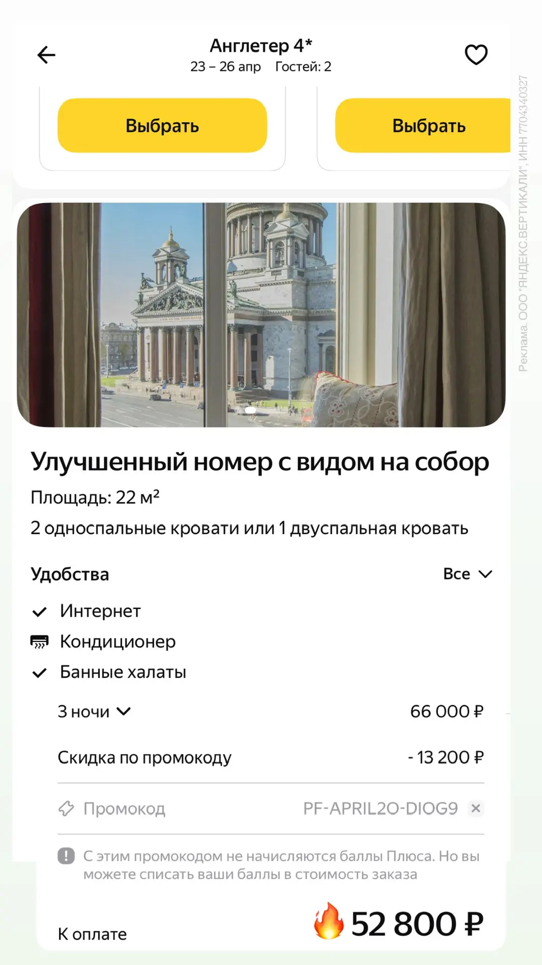 Минусы, что действуют только на бронирования по России.