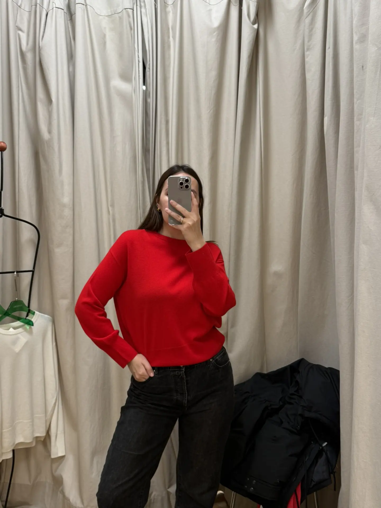 Понравился красный (не сфоткала) и белый лонг, думаю над покупкой какого-то цвета… у красного свитера очень красивый яркий красный. Лонги размер M, а свитер S.