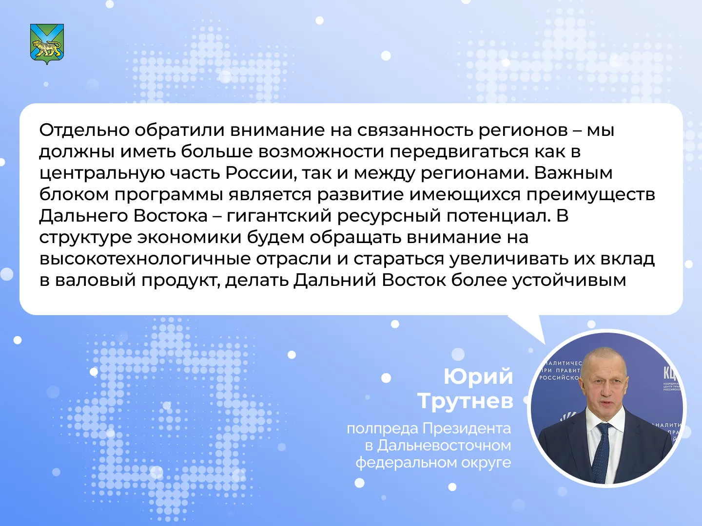 У Приморья есть успехи в благоустройстве территорий, привлечении инвестиций в экономику, привлечении федеральных средств на развитие наших городов и посёлков. Край – один из лучших в стране по инвестклимату, стройке, развитию спорта, по поддержке участников СВО и членов их семей. Однако, конечно, есть проблемы, решением которых предстоит заниматься власти на всех уровнях.