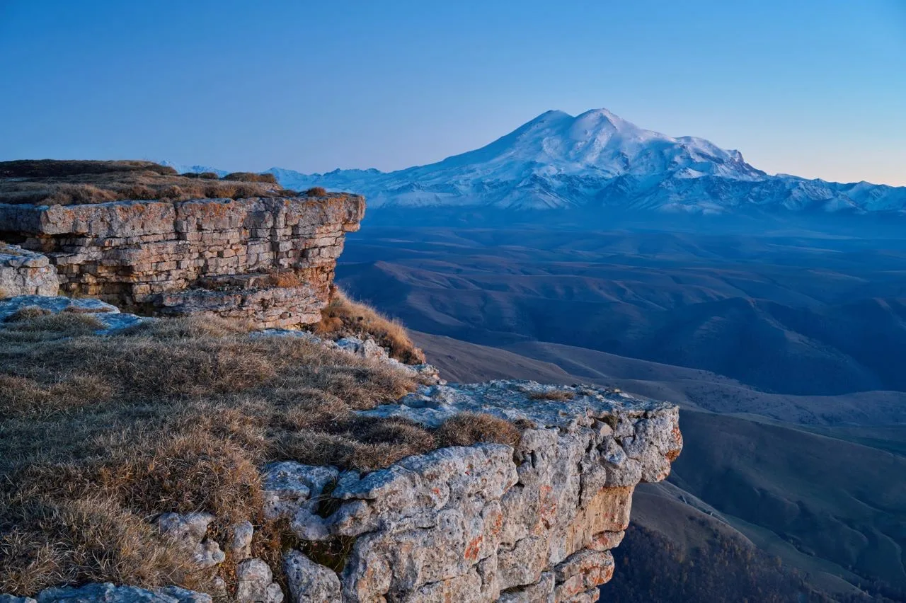 В ясную погоду с плато открывается красивый вид на Эльбрус.