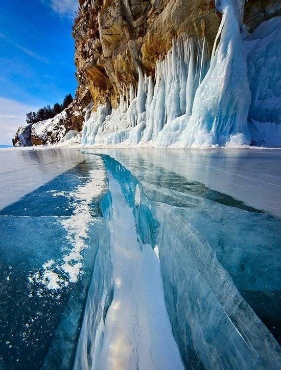 Эти фантастические звуки можно услышать, приложив ухо ко льду, почти в любой части озера. Появляются они от постоянного треска льда, реагирующего на перепады температур и изменяющего собственный объем.