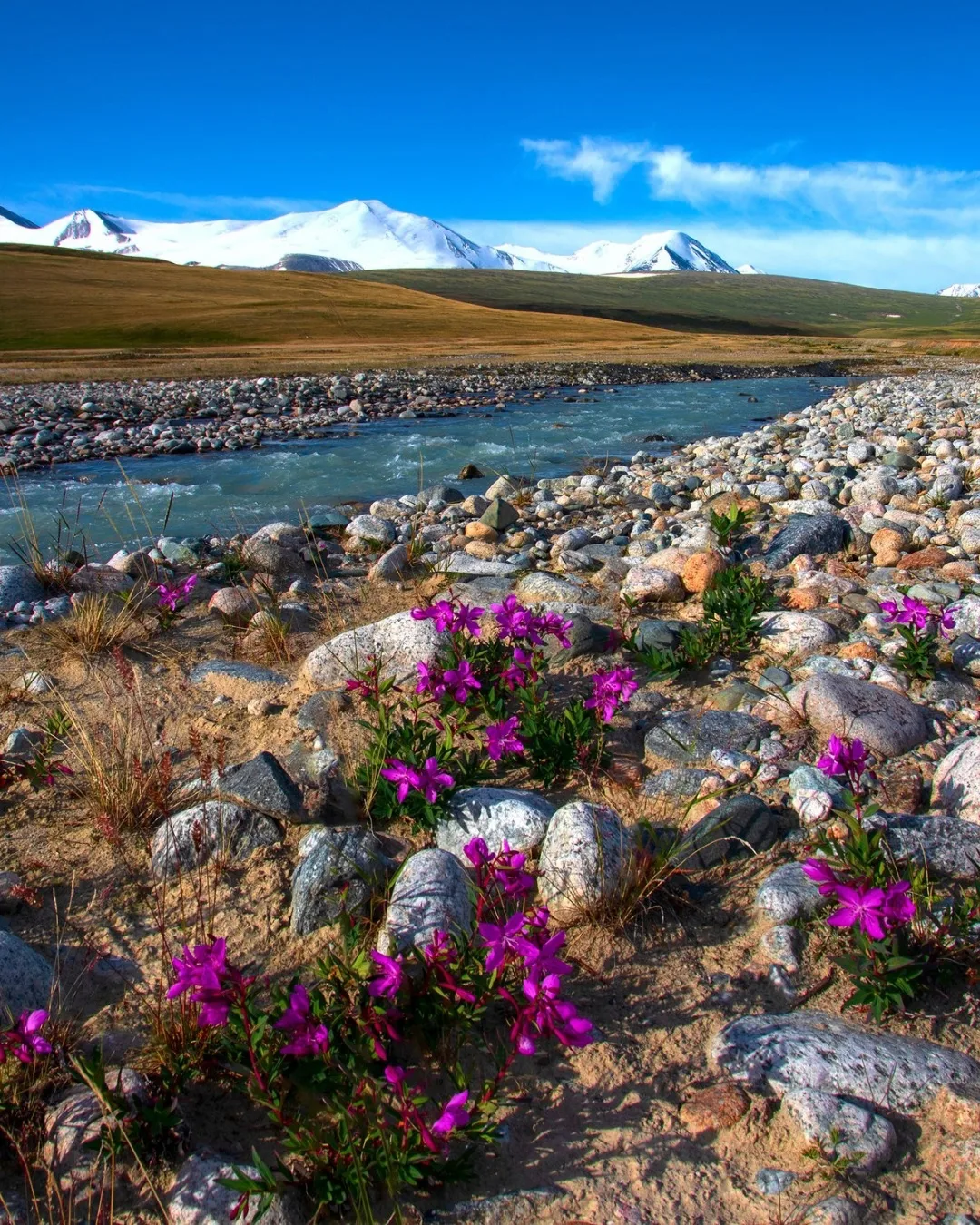 ❤️Величественная Белуха — высочайшая вершина Алтая и Сибири (4509 м). Расположена близко к центру Евразии, окружена 169 ледниками (150 кв. км).Эта снежная корона, холодная и таинственная, отражает свет, словно излучая сияние, известное всему миру.
