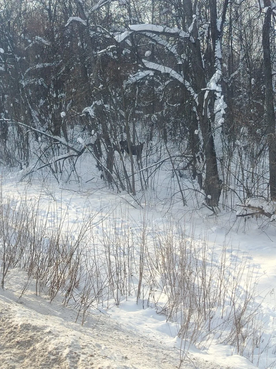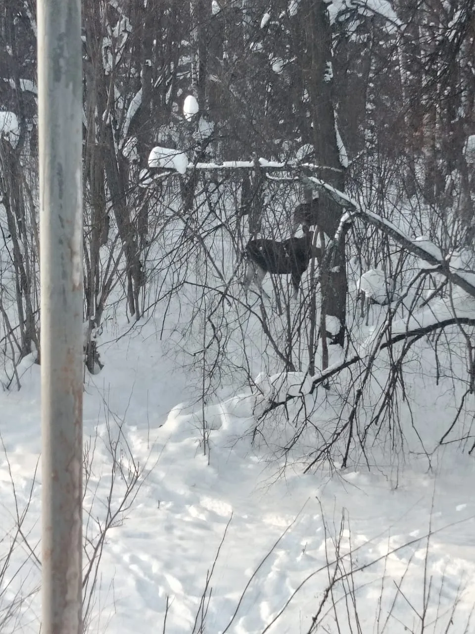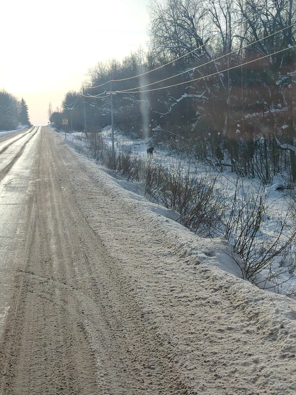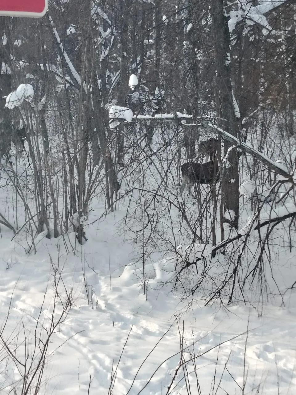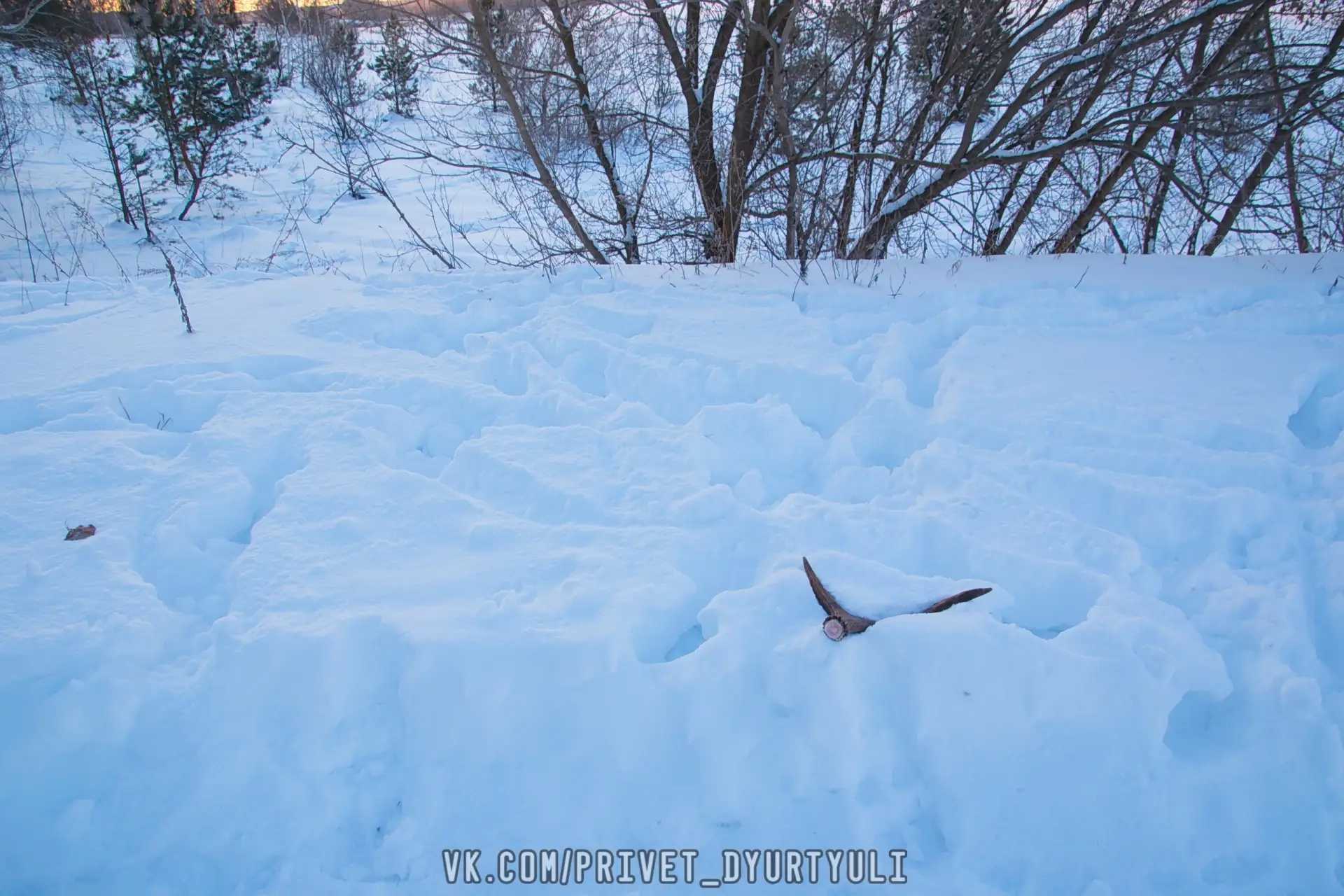 Недавно утром я поехал снимать восход за мостом через Белую. На снегу я увидел множество следов. Это были следы косуль. Они истоптали всё вокруг. Даже нашёл место их лёжки. На одном из снимков заметен лежащий на снегу рог. Похоже, здесь произошла «битва» между самцами. Один из них, вероятно, пострадал. К сожалению, мне не удалось снять этот момент, так как животные услышали звук машины и убежали. Если бы я знал, что здесь происходит, то пошёл бы пешком. Но рог я всё же подобрал — это был мой трофей.