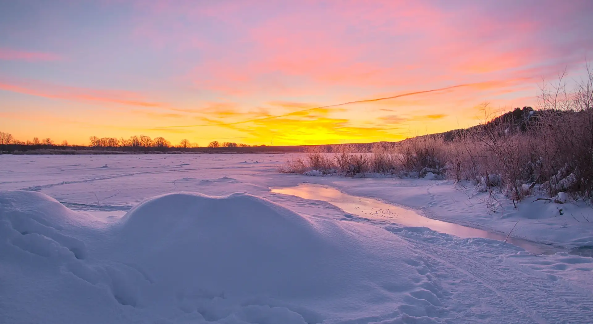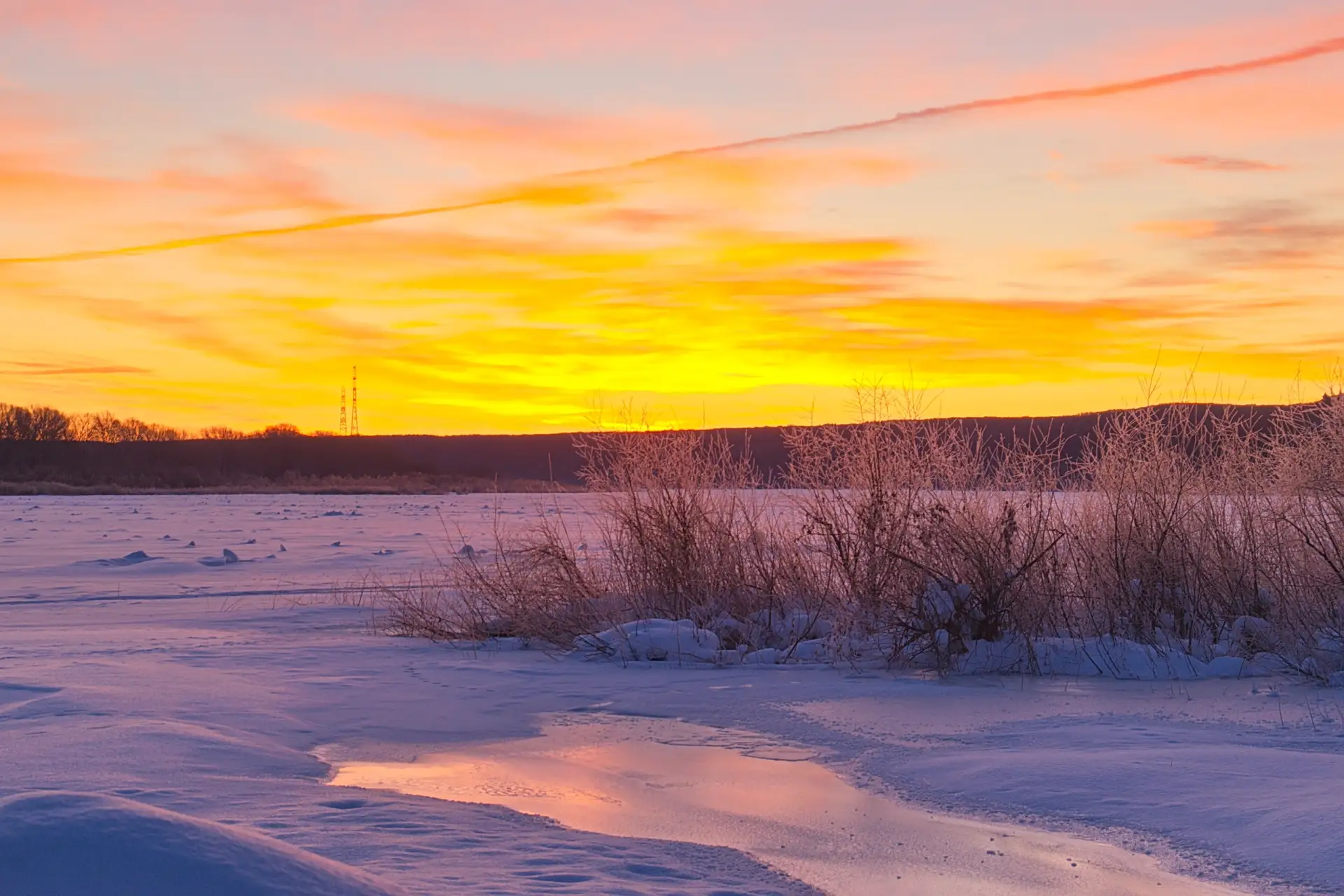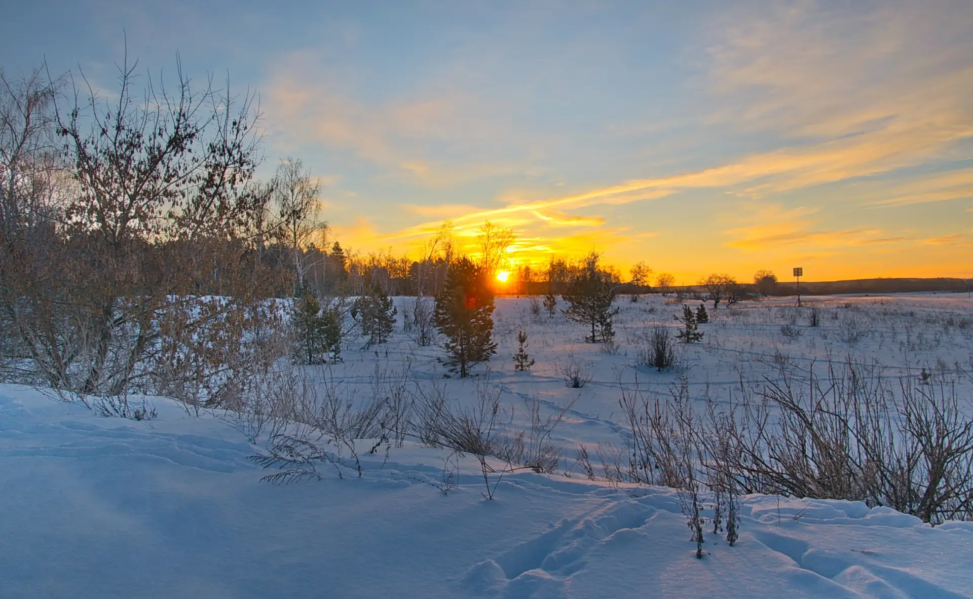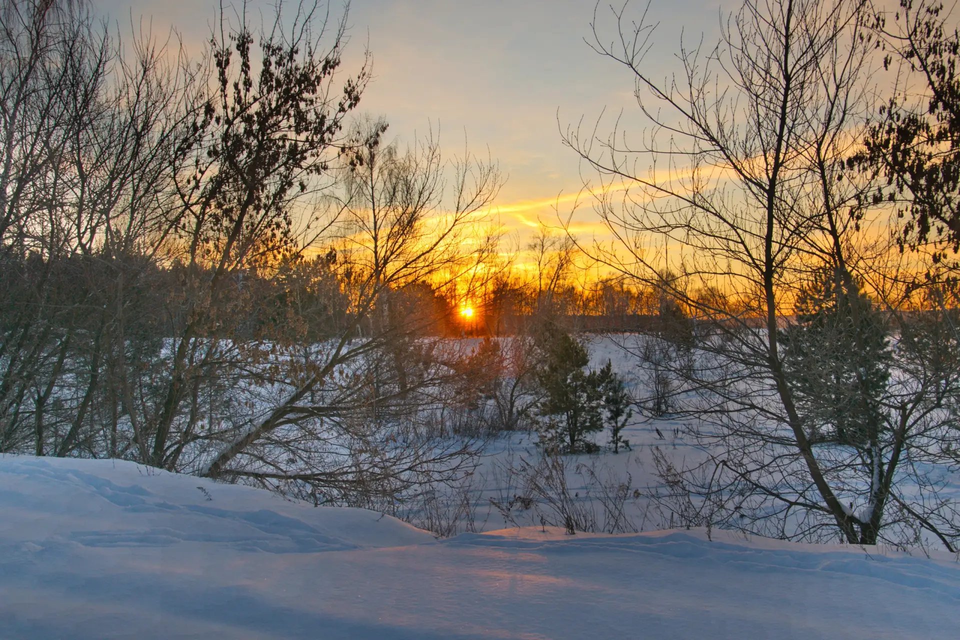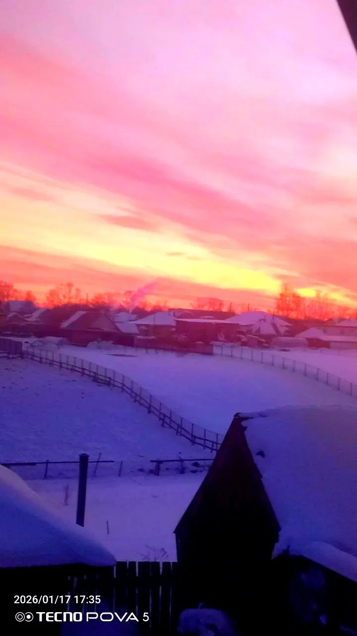 ЗИМНИЙ ЗАКАТ В ДЕРЕВНЕ.