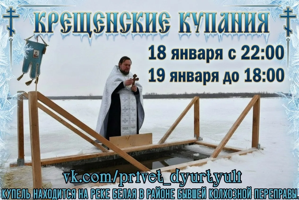Приглашаем всех жителей Дюртюлей на Крещение Господне. Крещенские купания пройдут в оборудованной купели на реке Белой (на пересечении улиц Советской и Красноармейской). Вечером 18 января после литургии в Храме Василия Великого состоится крестный ход к реке. Освящение воды и первые купания начнутся в полночь.