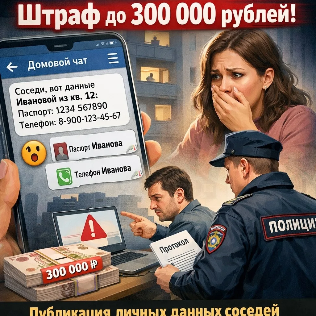 За размещение в домовом чате персональных данных соседей граждане Российской Федерации могут быть подвергнуты административному штрафу в размере до 300 тысяч рублей.