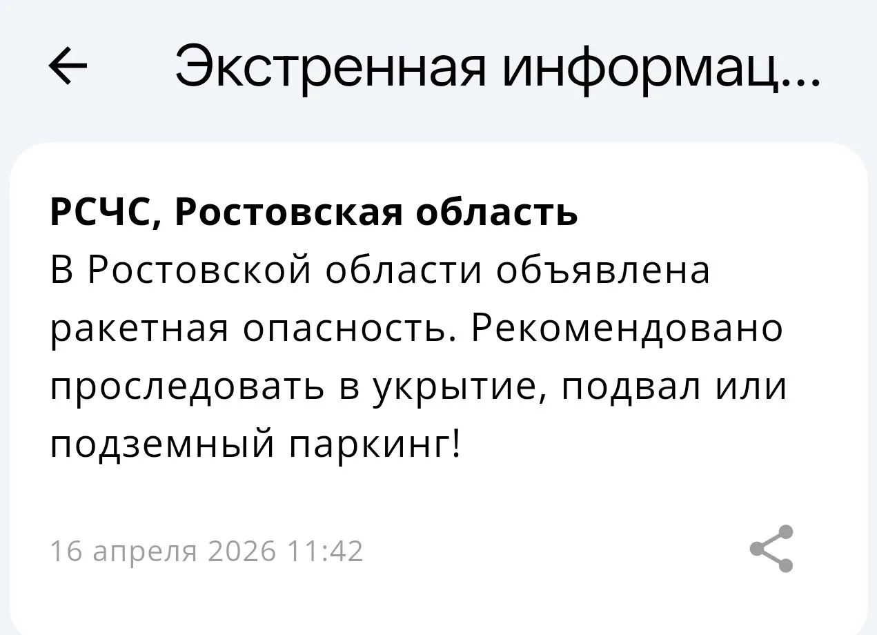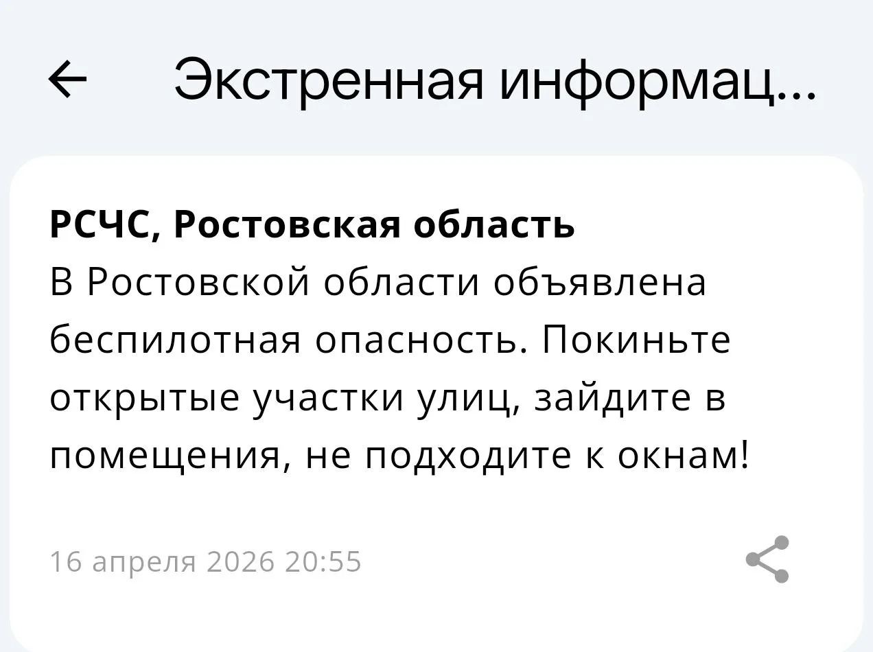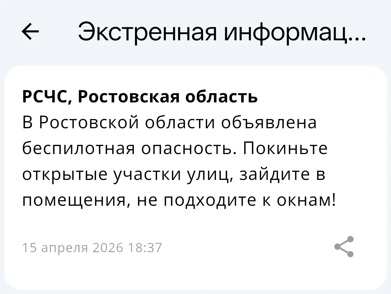 Отбой опасности атаки БПЛА объявили в Ростовской области