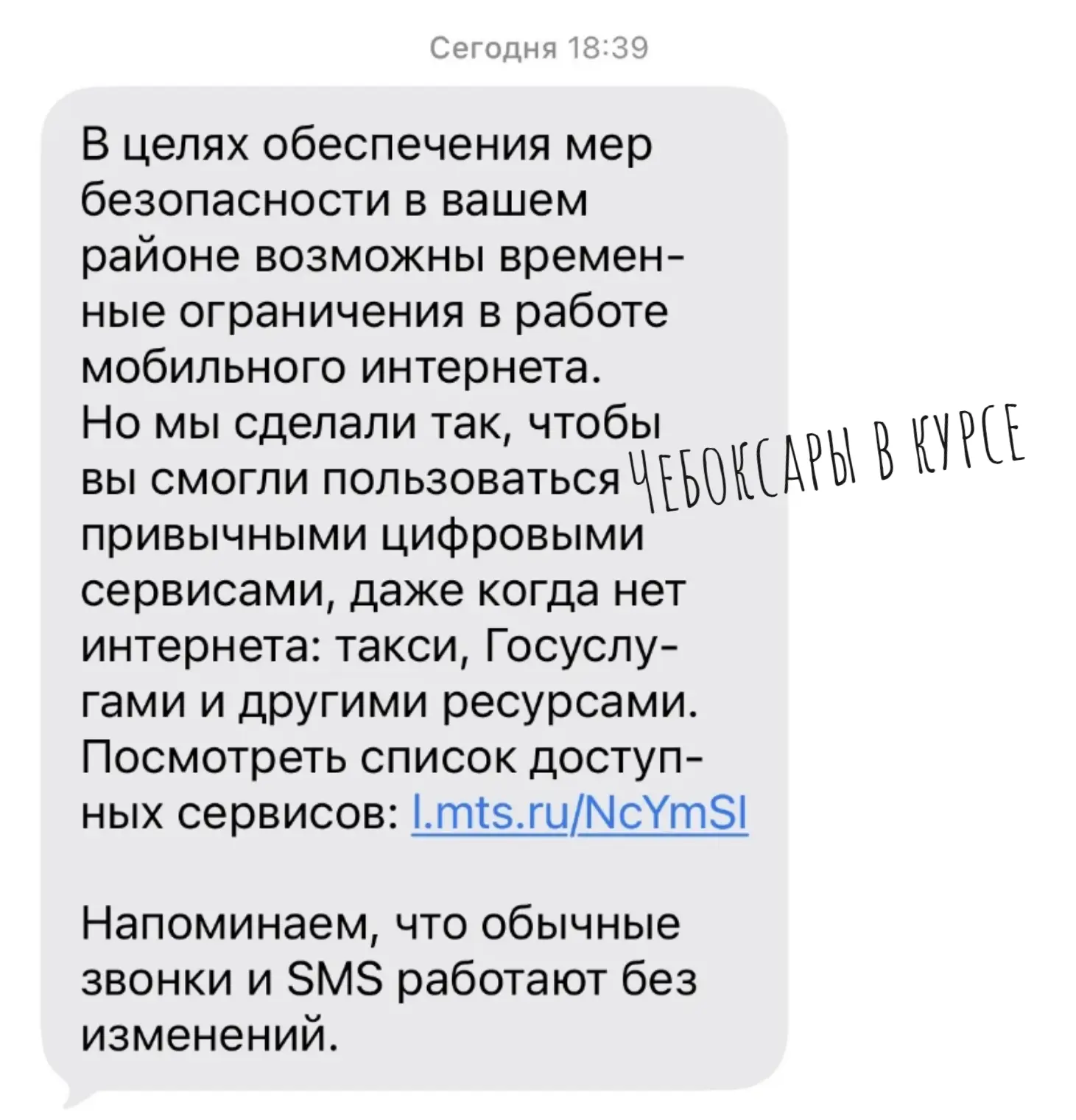 ❗️❗️❗️МТС сообщил о возможном временном ограничении мобильного интернета в Чебоксарах и Новочебоксарске в связи с обеспечением безопасности.