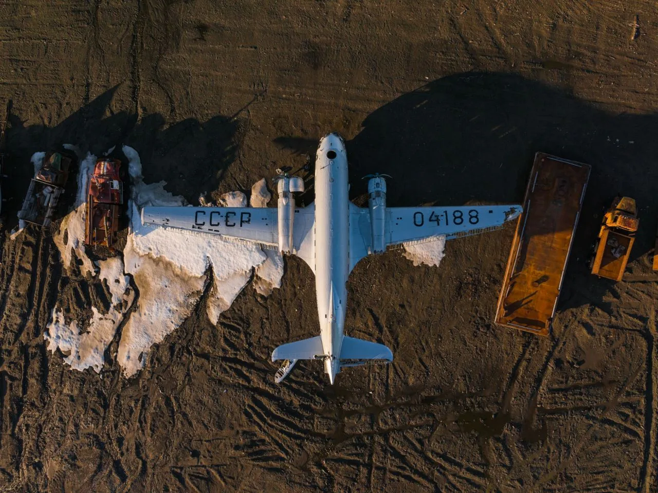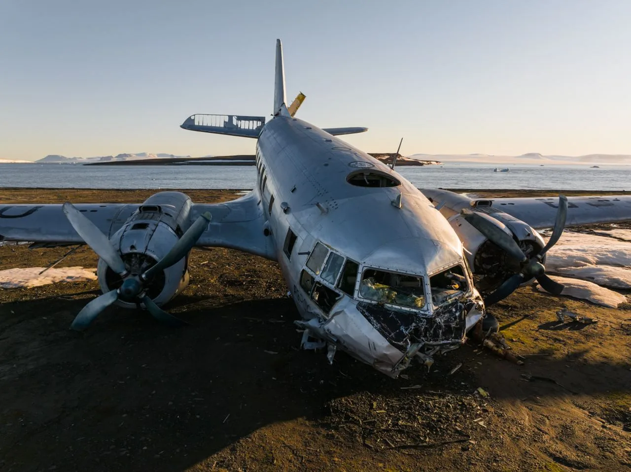 На острове стоит, словно памятник, самолёт ИЛ-14, который потерпел катастрофу 12 февраля 1981 г. Самолёт совершал спец рейс из Москвы на ЗФИ, перевозил учёных Обнинского МетеоНИИ и их аппаратуру для работы в обсерватории. На борту находилось 13 чел. Посадка осуществлялась на временную посадочную площадку в условиях полярных сумерек, при этом посадочный вес самолёта превышал допустимый на 700 кг. Когда самолёт находился на предпосадочной прямой, пилот дважды терял из виду огни ВПП, однако не стал уходить на второй круг и продолжил снижение, не обращая внимания на предупреждение второго пилота об отсутствии видимости ВПП. Самолёт приземлился не на полосу, а в 32 метрах левее её на неукатанный снег глубиной около 1м. Носовая стойка шасси при движении самолёта по глубокому снегу сломалась, из-за этого носовая часть фюзеляжа ударилась о землю и частично разрушилась. От удара сместился расположенный в салоне доп. топливный бак и груз, убив двух пассажиров и повредив кабину пилотов. Ранения получили пять членов экипажа и четыре пассажира.