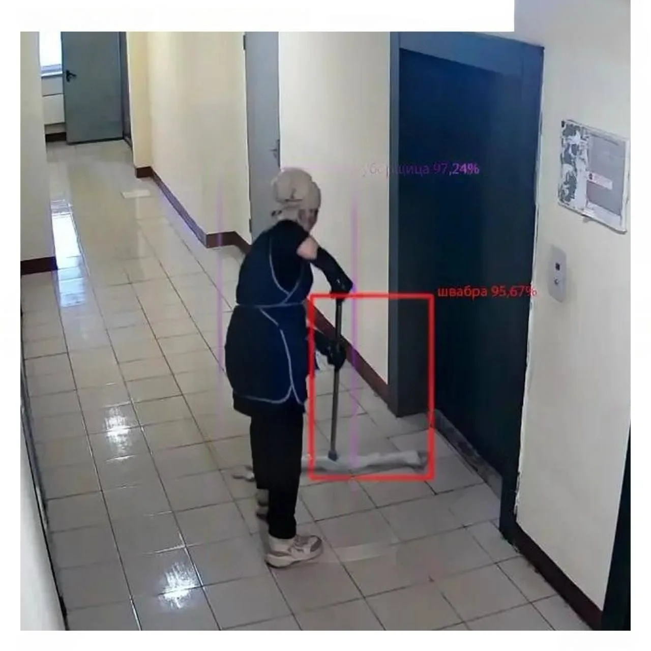 Алгоритм распознаёт уборщицу, фиксирует время работы и передаёт отчёт.