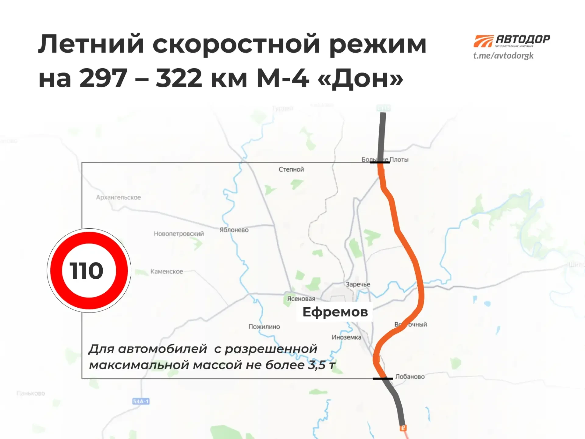 🔹 На участке М-4 «Дон» с 297-го по 322-й км — до 110 км/ч