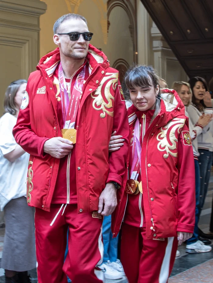 Чудо-девочка, Анастасия Багиян, выступающая в лыжных гонках. На ее счету ТРИ золотых медали на Паралимпиаде -- 2026. Рядом, ее ведущий, Сергей Синякин