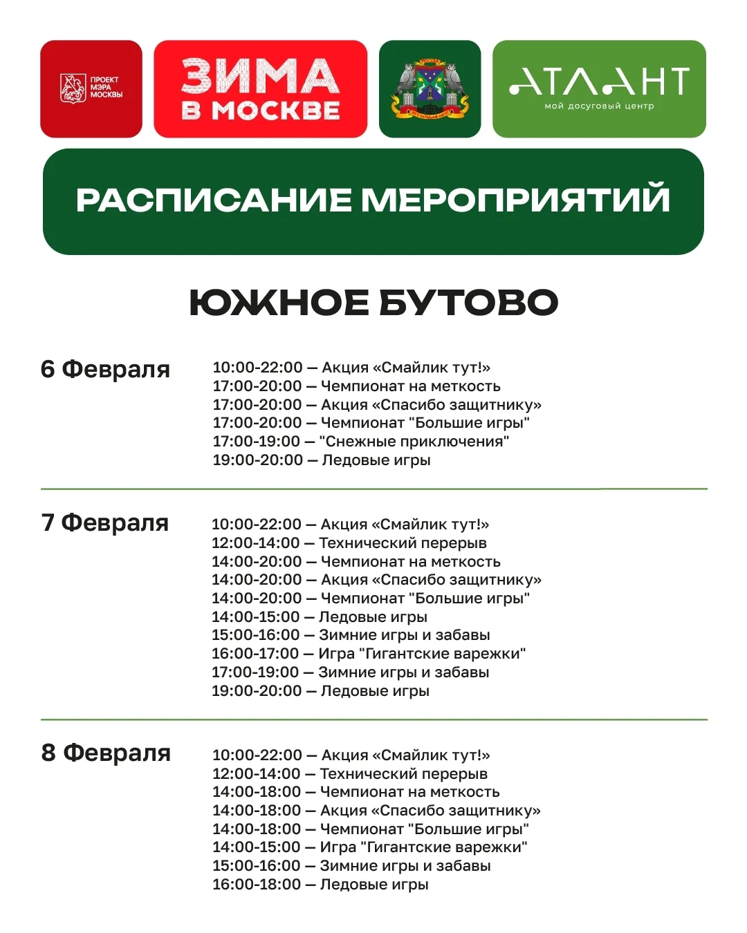 На юго-западе Москвы зима особенно спортивная. В Северном Бутово проходят самые протяжённые в городе лыжные трассы — «Альфа‑Битца» (свыше 20 км) и «Поляны Бутово» (более 15 км). Две трассы соединяются между собой и подходят как для профессионалов, так и для любителей.