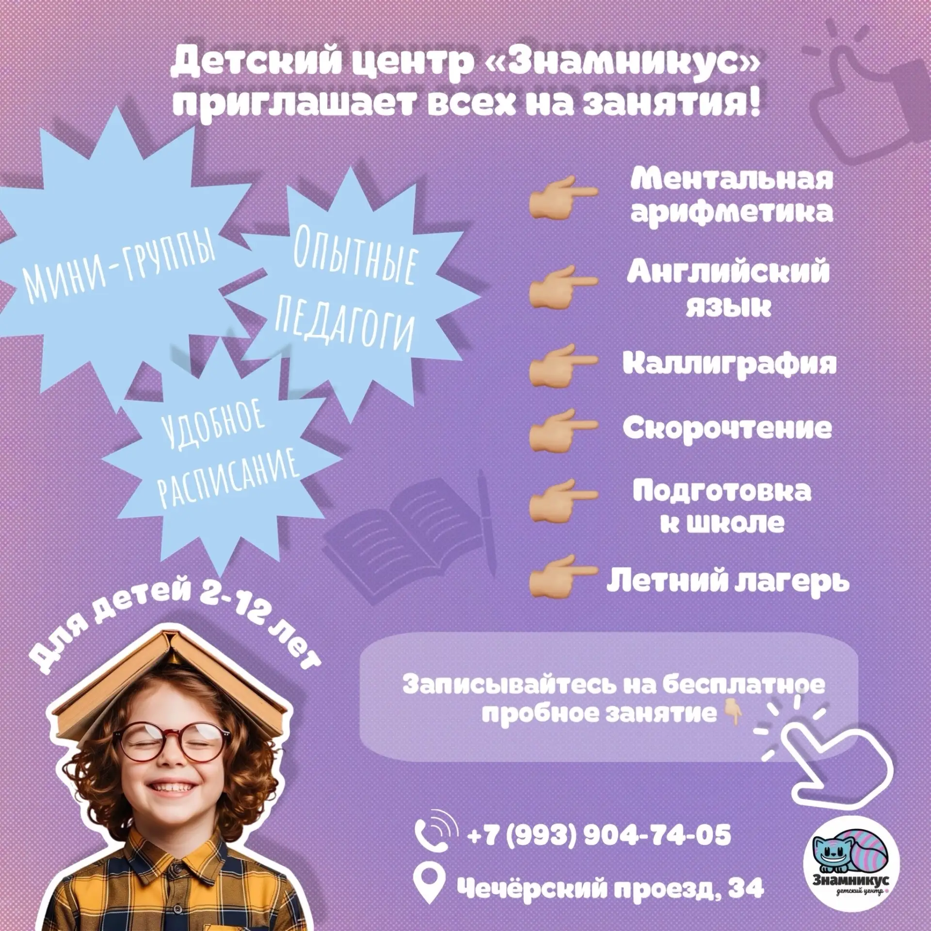 Детский центр «Знамникус» приглашает ребят на занятия!📚✏️