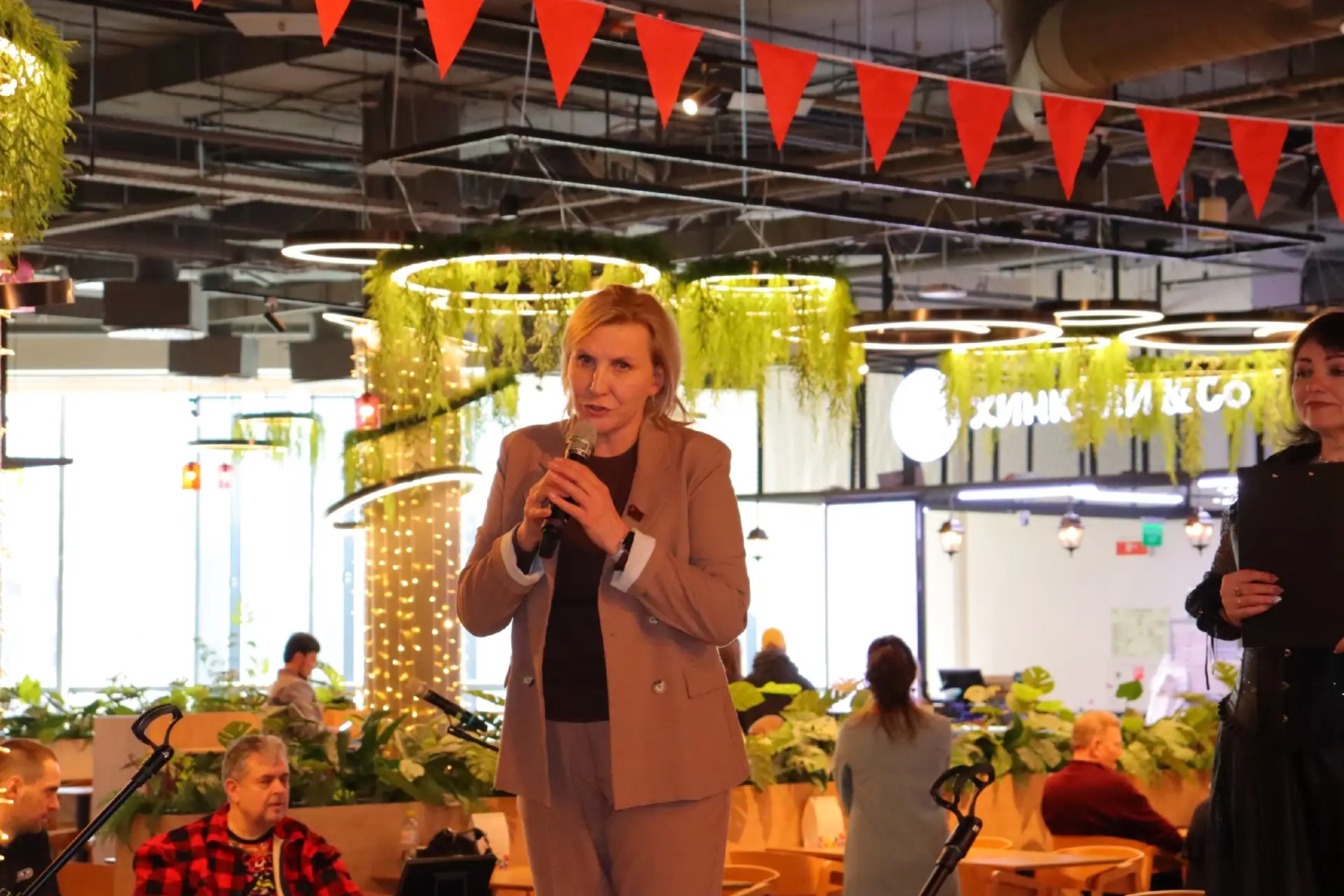 На вечере звучала популярная музыка 90-х, что добавило особую атмосферу вечера. Хиты того времени заставляли гостей танцевать и вспоминать незабываемые моменты из прошлого. Зажигательные ритмы и знакомые мелодии создавали настроение веселья и ностальгии, а участники с удовольствием исполняли свои любимые танцы под звуки культовых композиций 90-х. 🎶✨