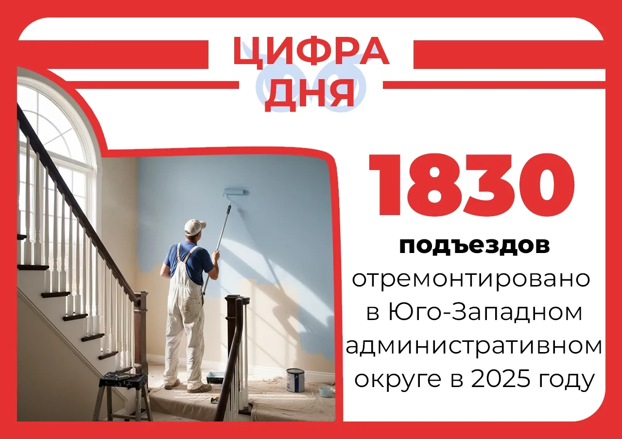 В Юго Западном административном округе завершён масштабный этап обновления жилого фонда. В 2025 году отремонтировано 1830 подъездов - теперь они отвечают современным стандартам комфорта и безопасности.